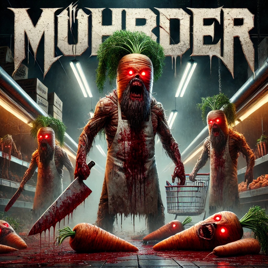 Groove metal, horror-folk, dark & powerful and absurdly brutal eerie synths, Djent guitars, Deep Bass, Horror Organ, Epic MURDER CHOIRS-deep growls, Percussion: Sounds of cracking carrots, Dark- brutal vocals