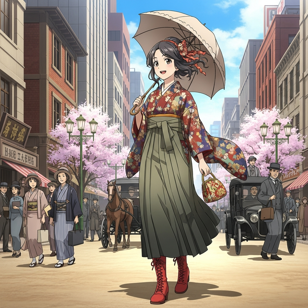 Theme: A cheerful modern girl walking through Taisho-era Tokyo, discovering hope and identity in a changing world