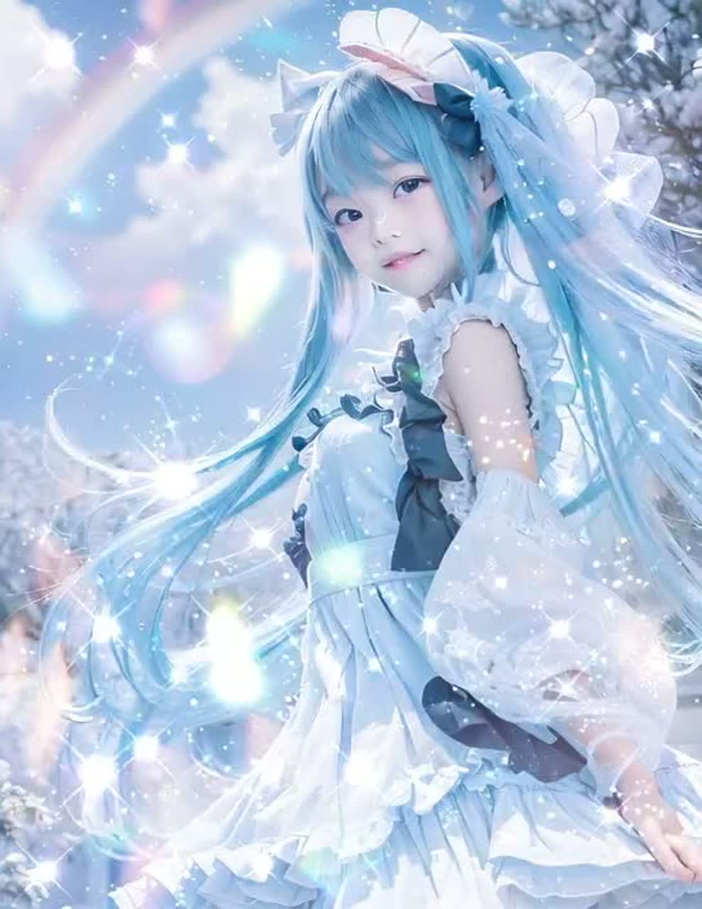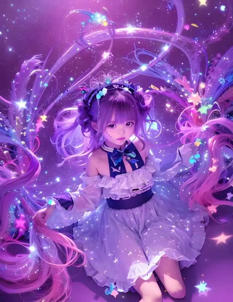 Dreamy kawaii EDM with a touch of Eurobeat — fast tempo (155 BPM), pastel synths, sparkly melodies, and a cute, innocent girl vocal (elementary school girl voice), Bright, playful, and magical like an anime idol concert in a dream world, Soft yet energetic, filled with joy and emotion