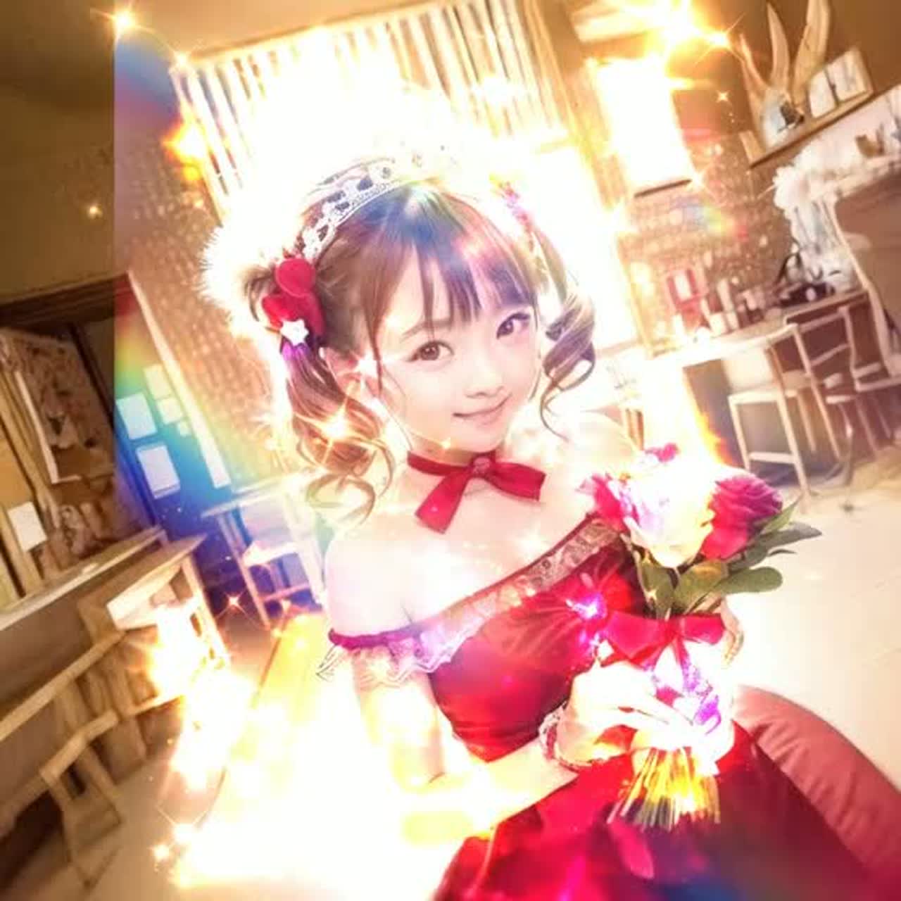 A high-speed crossover of Eurobeat and EDM with bright and emotional idol pop energy, Sparkling synths, fast tempo, and a powerful yet pure female vocal, A dazzling dance tune that depicts the brilliance and sadness of youthful idols, An emotional youth song with a fast-paced sound and honest feelings, just intonation, cute, kawaii