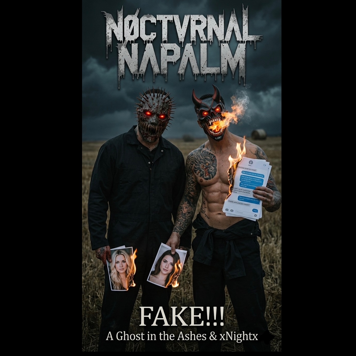 Iowa-era extremely manic and aggressive nu metal meets metalcore, virtuosic twin lead 7-string guitars in Drop-D with dark dissonant riffs and tight syncopated chugs, Single manic relentless dominant metal drum kit only — punchy double-kick, sharp cracking snare, aggressive tom fills, china cymbal accents, fast chaotic transitions, No marching drums, no tribal percussion, no auxiliary drum layers, DJ scratches and distorted samples in the intro, Raw, unfiltered male vocals with manic hype shouts, harsh screamed verses, gang chant choruses and layered screams, Dark, sinister atmosphere, Explosive chant-driven chorus, crushing half-time breakdown, Virtuosic Heroic dissonant guitar solos with whammy dives and feedback, Raw, abrasive production, 120–140 BPM with violent dynamic shifts and relentless venomous vocal delivery, ‑Nu Metal Revival, ‑Modern Nu Metal, ‑Industrial Metal, ‑rap rock, ‑alternative metal, ‑djent, ‑post-hardcore, ‑Nu Metal Revival / Modern Nu Metal, ‑Industrial Metal, ‑rap rock, ‑alternative metal, ‑djent, ‑post-hardcore