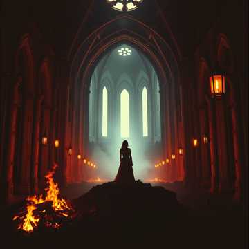 Symphonic metal, dark and melancholic, epic cinematic atmosphere, Moderate tempo, minor key, Powerful operatic female lead vocals with emotional vibrato, layered choirs and backing vocals, Heavy distorted guitars, melodic leads, bass and strong drums with orchestral strings, brass and percussion, Complex minor chord progressions with diminished and augmented tension, Theme of inner struggle, rebirth from ashes, silence, fire and defiance, English lyrics