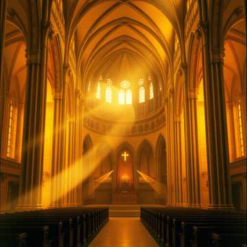 Chanson épique et mystique à caractère sacré, Chœurs grégoriens massifs, voix masculines profondes et solennelles, chantées en pseudo-latin et latin ancien, Atmosphère médiévale et spirituelle, évoquant une cathédrale monumentale baignée de lumière dorée, Tempo lent à modéré, battement régulier et hypnotique, Percussions tribales discrètes, nappes orchestrales amples, cordes et chœurs dominants, Mélodie simple mais puissante, émotion de transcendance, mystère, élévation et solennité, Production cinématographique, new age / world music chorale