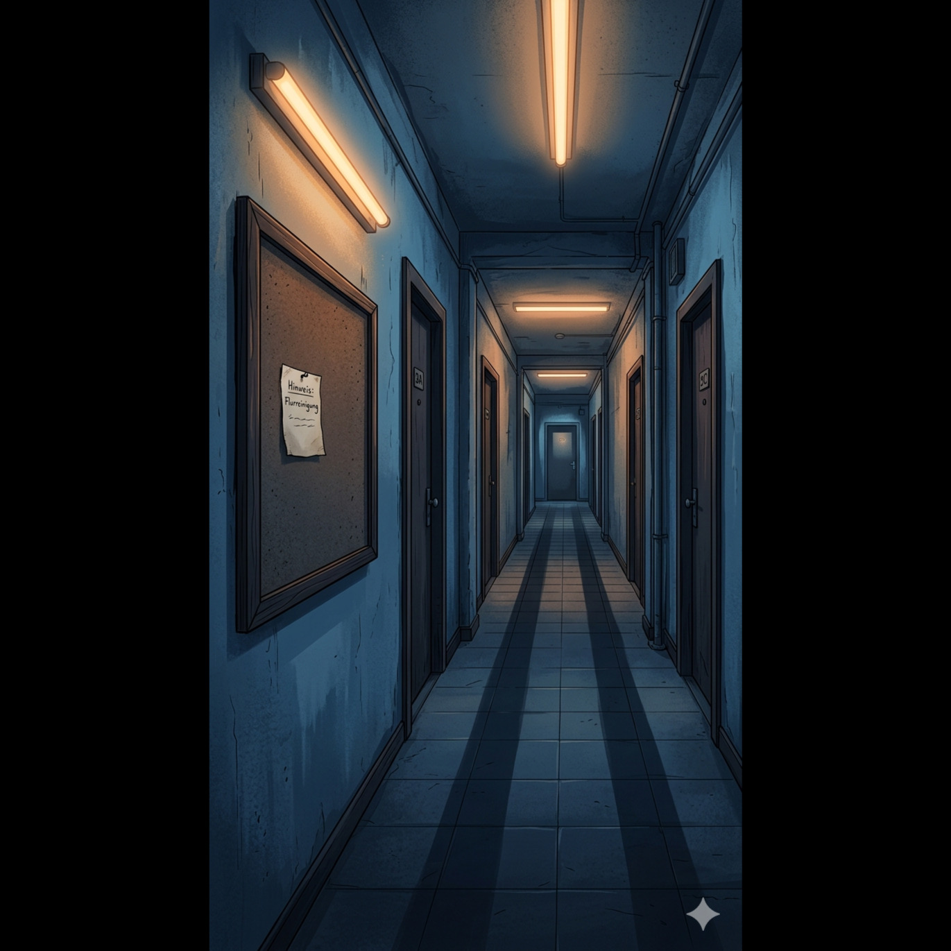 An ambient dark-pop piece in E minor at 68 BPM with a haunted, cinematic atmosphere, Soft synth pads, distant piano echoes, breathing textures, and low sub warmth create a floating nocturnal space, while light symphonic strings and faint choir layers add subtle emotional lift without overpowering the intimacy, The arrangement stays sparse and dreamlike through the verses, gradually deepening with low pulse, drones, and restrained harmonic expansion, The male vocal remains low, close, and breath-led, carrying the story with ghostlike calm rather than dramatic force, Refrains open slightly into a more melodic rise, while the later sections introduce heartbeat-like motion and gentle orchestral tension, The production emphasizes width, reverb depth, soft low-mids, and a fragile cinematic glow, avoiding glossy pop polish in favor of eerie stillness and emotional mystery