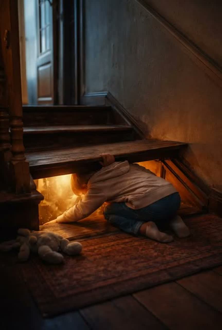 [Emotional Core: A child finding a hidden inner floor for protection, growing into quiet strength, subtle transformation from retreat to resilience]
