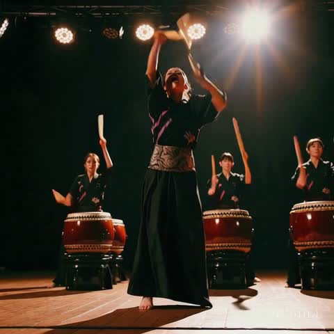 Style: Epic fusion of traditional Japanese taiko drums and spiritual festival rhythms with cinematic EDM and tribal bass, Focus on deep, heartbeat-like taiko patterns (don, don, don-doko-don), building intensity like a sacred ritual, Use large taiko ensembles (odaiko) layered with modern cinematic bass pulses, Tempo: 115–120 BPM, Include ambient shakuhachi (bamboo flute) or gong sounds in breakdowns to create emotional depth, Use echoing festival chants like "sore!" or "wasshoi!" as rhythmic accents, not vocals, Build tension like a ceremonial procession, with climactic drops that feel like transcendence, No melody—just rhythm, low end, and atmospheric textures, Instrumental only, Grand, hypnotic, and immersive