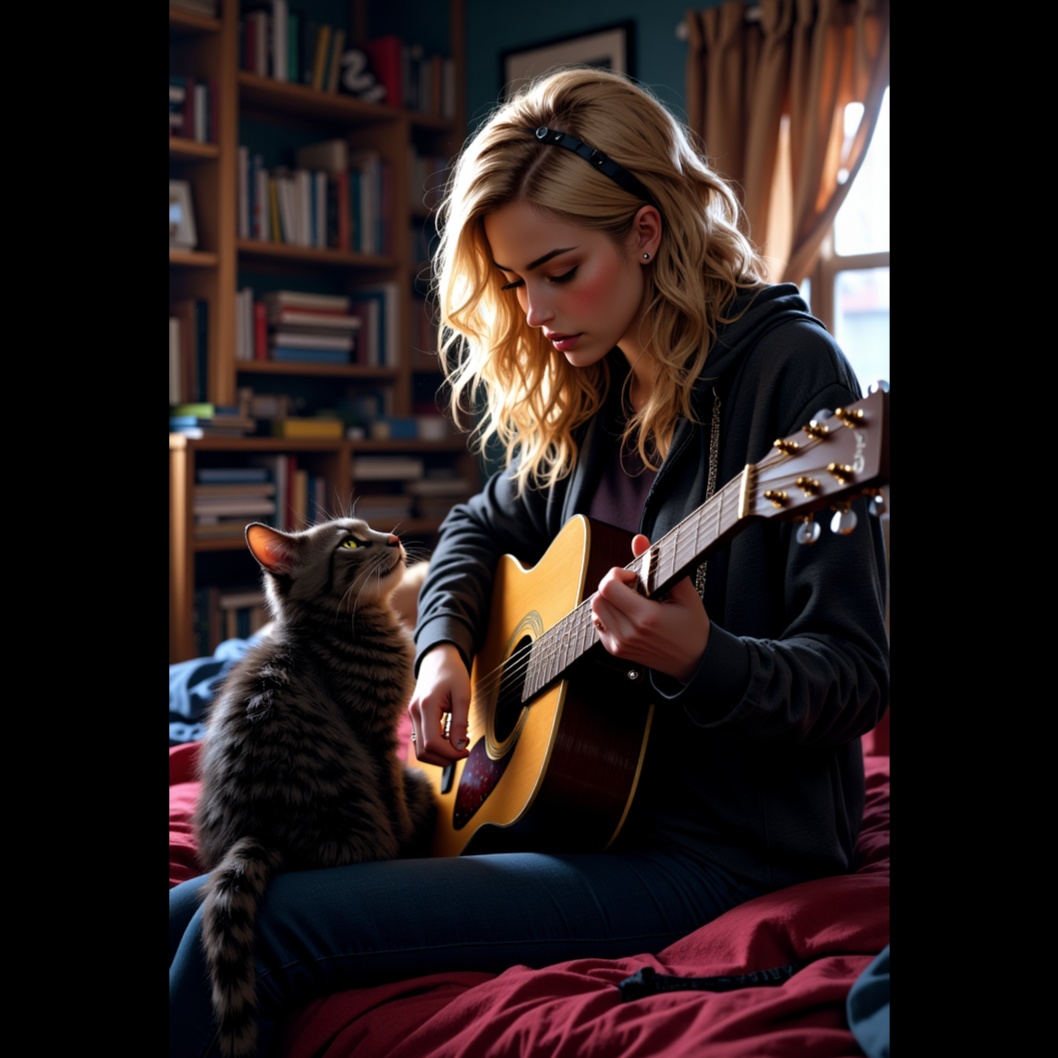 heavy electric guitar riffs, 1990's grunge, raspy high emotion female vocals, delicate alternating with loud emotional vocals, catchy heavy electric guitar riffs, 808s