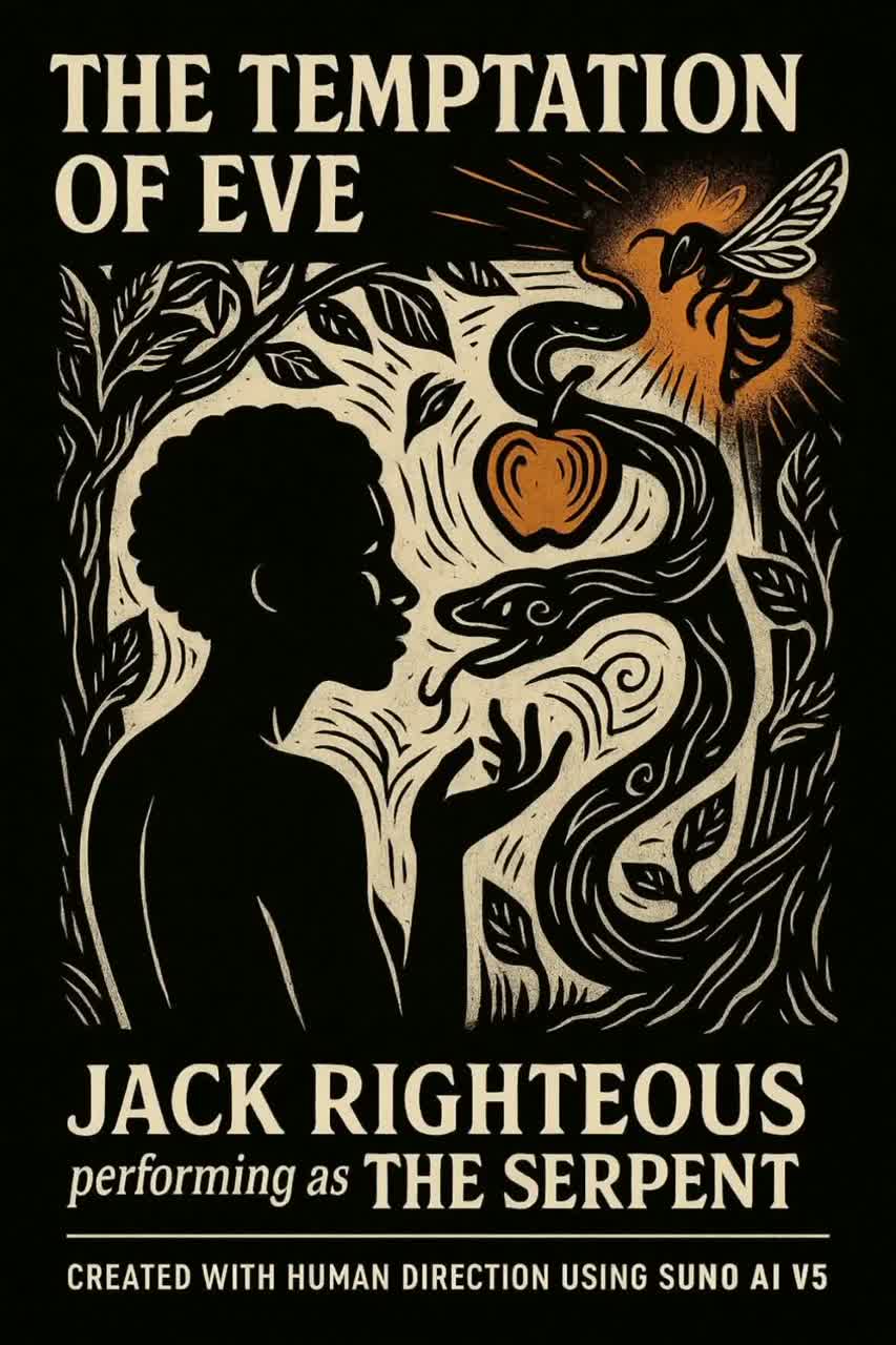 A Broadway-style musical retelling of Genesis — creation, temptation, and the first fracture of light and shadow. Follow Jack Righteous as he witnesses Eden rise, fall, and echo through time.
