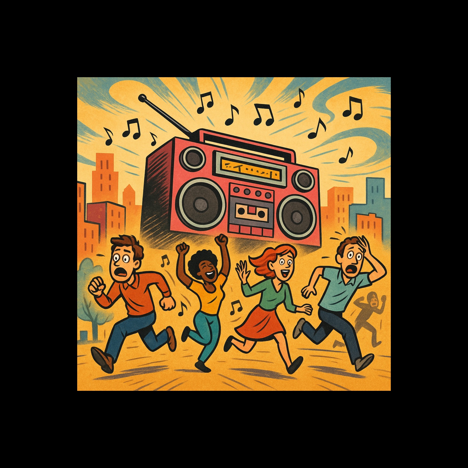 This cinematic archival piece opens with a scratchy, tape reel recording: faint radio crackle, warbling pitch, and tape dropout surround a slowed, distorted male countdown, Layered analog hiss, sporadic beeps, and distant broadcast interference build tension, The scene drifts seamlessly into dense static beds and haunting dronesβno rhythm, drop, or tempo, Pure pre-war broadcast atmosphere, evoking decayed archival mood through expert sound design