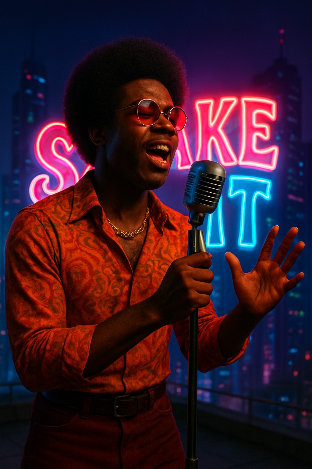 Hyper-funky 80’s dance groove with the electric bass completely dominating the track, The bassline is wild, technical, and constantly in your face: extreme slap, double-thumb bursts, pull-offs, muted machine-gun riffs, ghost-note streams, octave jumps, gliss slides, and explosive fills — bass takes the lead like a solo instrument from start to finish, Drums stay tight on a 16th-note funk pocket to support the chaos, Guitar is minimal: just light wah chops, Synth brass hits for accents only, The entire track is built around an aggressive, show-off bass performance, Length about 5 minutes, Vocal lines ride on top but leave space for the bass to “go berserk, ”