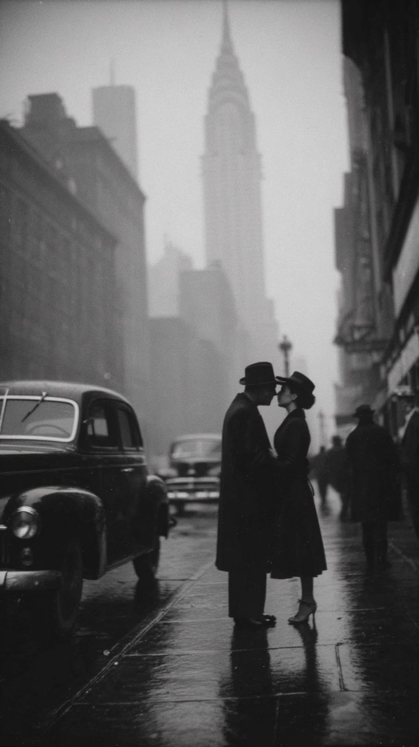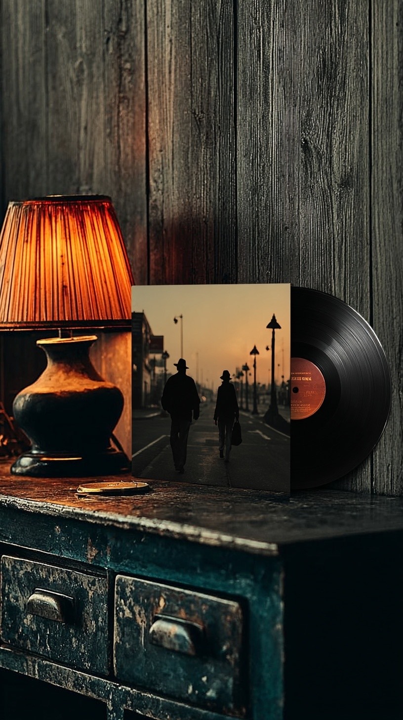 1950s Lo-fi Doo-wop, Vintage Mono recording, Warm vinyl crackle, Muffled vocals, Upright bass, Slow swing, 1950s Love Ballad, Shrill saxophone solo, Melancholic but sweet, Analog saturation, Hissing tape