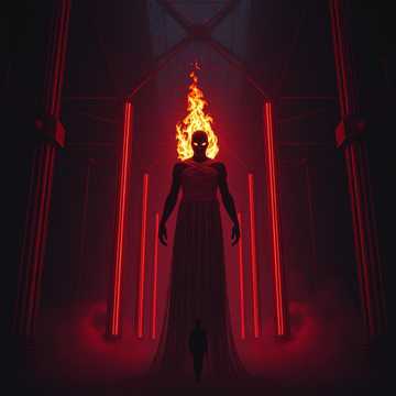 Japanese Female Vocalist, Anime Opening Theme, Dark Orchestral Pop with Classical Influence, [Mode: Harmonic Minor, Phrygian Tones], Key of E Minor, 145 BPM, Descending Chromatic Basslines, Piano, Violin, Droning Bass, Drums, Dark Synths, Horror, Haunting Atmosphere, Dark and Intense