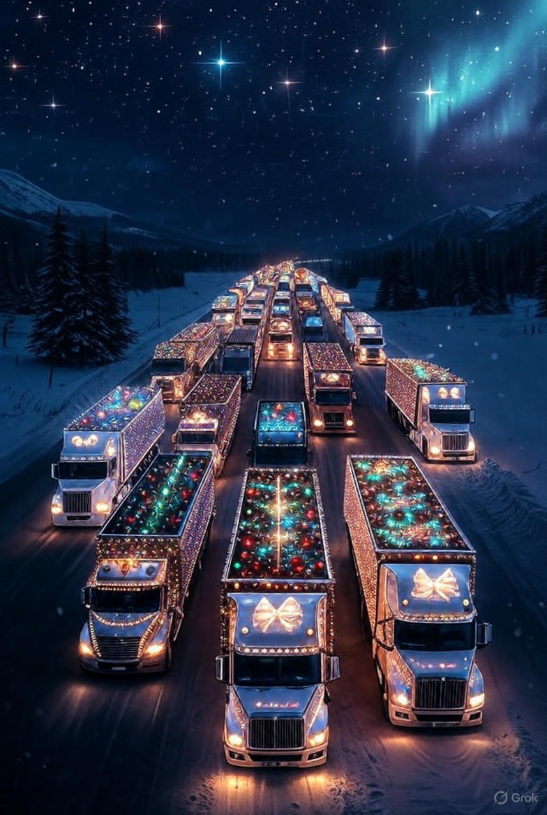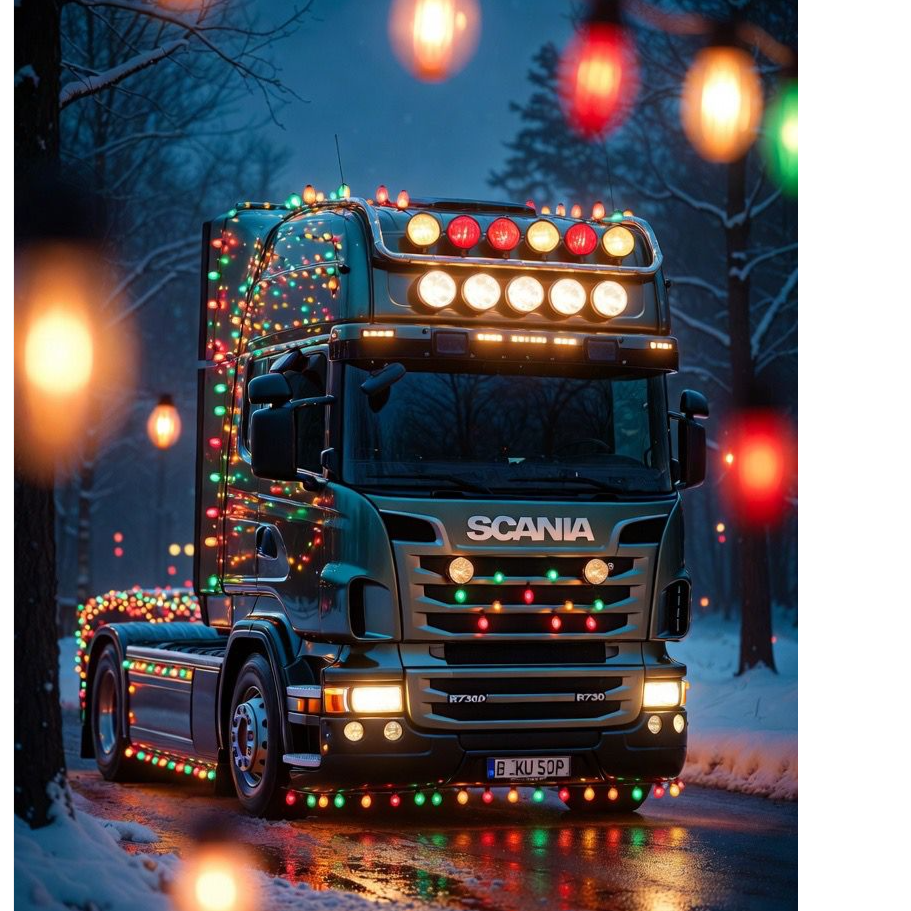 [swinging Dutch trucker Christmas convoy anthem on the exact “Feliz Navidad” melody, rock guitar, sleigh bells, massive truck horn choir, male lead with rough Hague trucker voice, big gang backing vocals over CB-radio effect, 120-130 BPM, reverb like a snowy highway convoy at night, joyful, powerful and full of brotherhood, filter out background noise, clean loud vocal mix, mastering bright, warm and unstoppable]