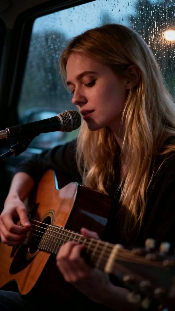 hit song: Chill lo-fi pop track, reverb, ~82 BPM, warm sub bass, muted drums with gentle swing, soft electric piano, gentle fingerpicked acoustic guitar (close-mic, warm, minimal), vinyl texture, subtle rain ambience, intimate close-mic vocal, calm emotional release, simple repeated sing-along chorus, no drop, minimal arrangement, human imperfections
