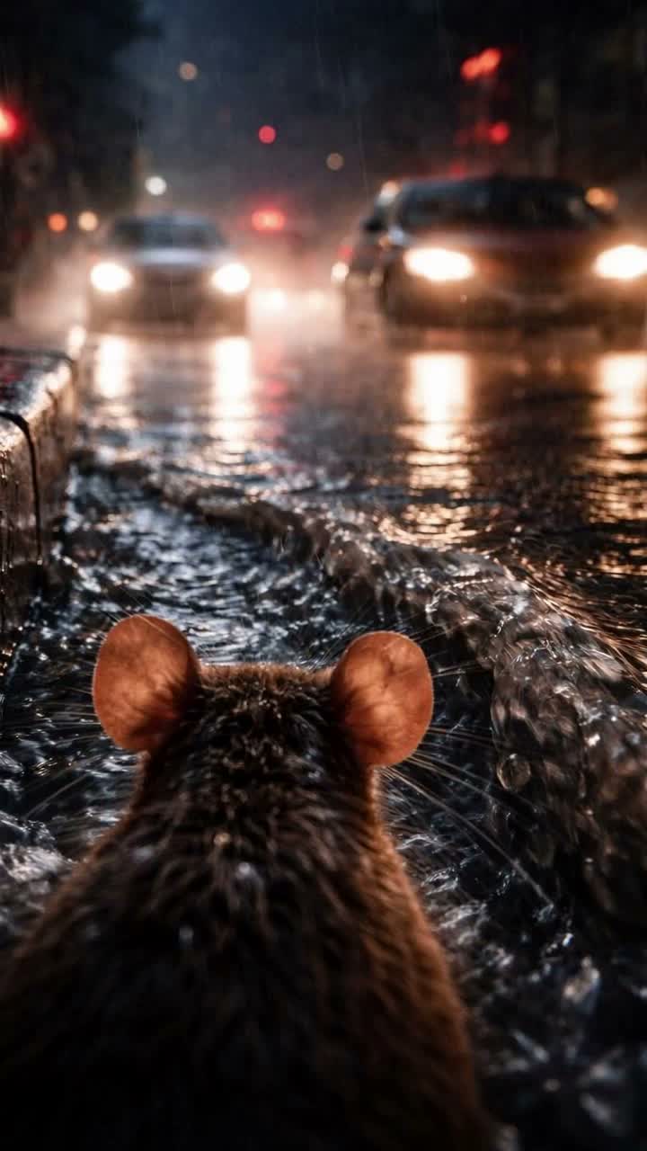 Cinematic story-song with emotional tension and playful danger, 132–142 BPM, narrative-driven structure that follows a tiny mouse crossing a deadly city road from first-person POV
