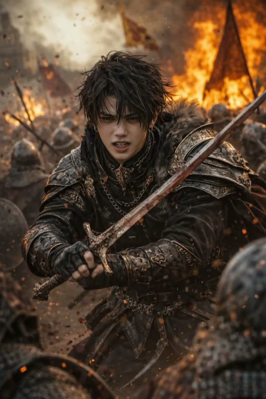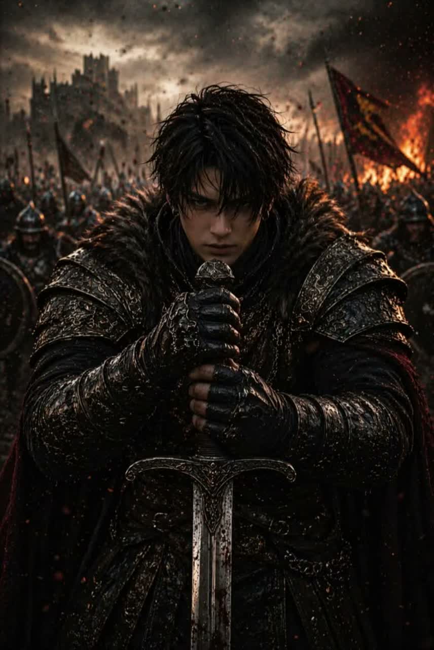 Structure: Intro (ominous low strings + timpani swell) → Verse (sustained strings + heavy percussion) → Chorus (brass fanfare + male choir, wide and powerful) → Bridge (orchestral layering, rising intensity) → Final Chorus (full orchestra + choir at peak charisma, thunderous climax) → Outro (brass resonance fading into solemn silence)