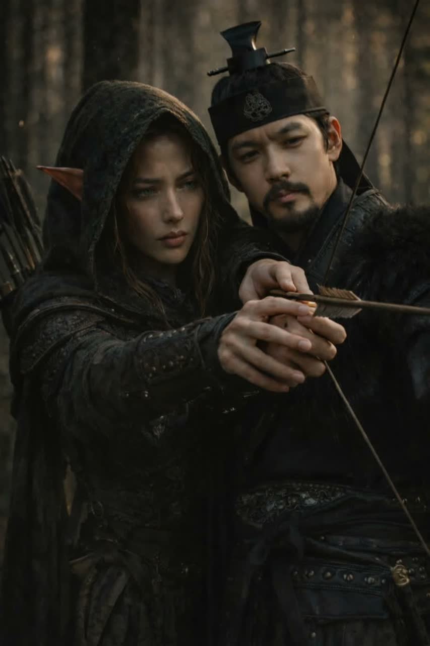 Epic fantasy orchestral OST, 5 minutes long, Intro: soft strings and flutes evoke a bustling marketplace, light and playful, Transition: low cello and percussion enter as rumor spreads — “the king of Joseon has changed, ”