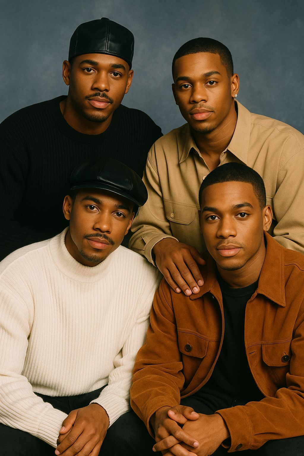 90s R&B, soul, vocal harmony group, slow jam, love ballad, Male group vocals, lead singer with layered harmonies, ad libs, Smooth Rhodes electric piano, mellow guitar licks, slow drum groove, bassline, soft string pads, finger snaps or soft claps, Romantic, emotional, longing, intimate