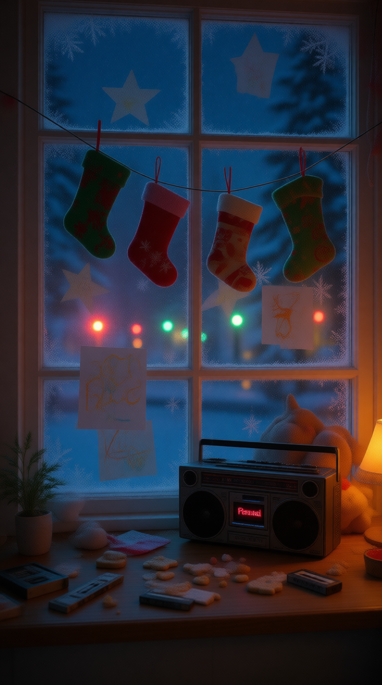 The Christmas track kicks off with vinyl crackle, lo-fi tape hiss, and bitcrushed vocals, building into a swinging club phonk, Mono 808 glides lay the bass under distorted cowbell, sidechained trap drums, and saturated samba percussion, Glitched Santa chants, warped children’s choir, and warped cassette texture merge with talkbox bursts and glitch stutters, creating a hypnotic cyber carnival groove, Minimal Clear French vocals ride the pulsing, saturated instrumental, fusing phonk, funk, and lo-fi club energy