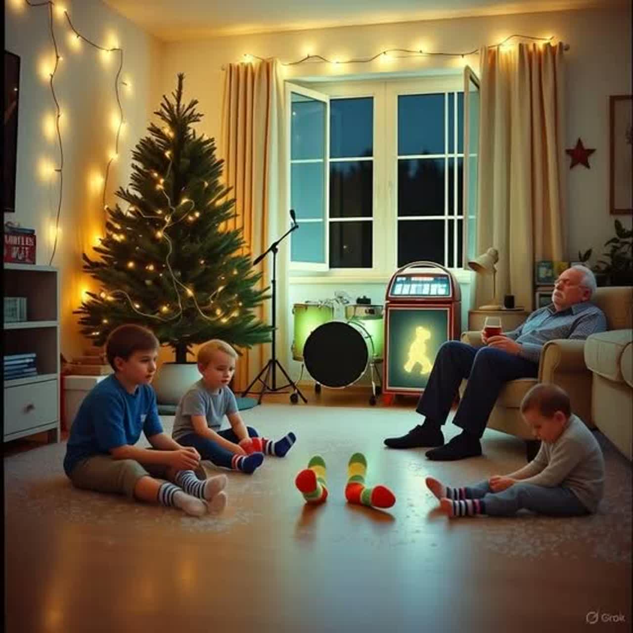 Cheerful playful modern Christmas kids song, upbeat tempo, cute chipmunk-style vocals, bright glockenspiel and sleigh bells, ukulele strumming, bouncy EDM-pop drums, Joyful children’s choir, holiday magic atmosphere, catchy melodies, festive sparkles, mischievous cartoon energy, warm family-friendly mood, Storytelling about Christmas preparation and excitement, rhythmic handclaps, light vocal chops, cinematic winter shine, innocent childlike tone, lively harmonies, High-pitched vocal ad-libs, fun vocal scat, joyful anticipation theme, sparkling production, dynamic transitions, clean modern mix, animated sonic textures, twinkling bells, feel-good holiday spirit