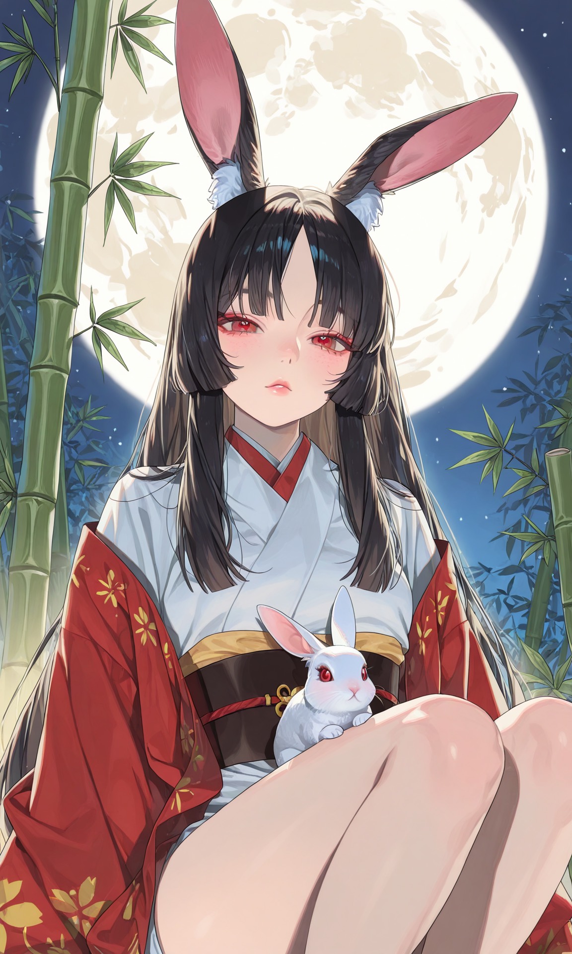 A clear, childlike female vocal, Japanese style, Fairy tale, lullaby, Traditional instruments (koto, shamisen, taiko drums) are interwoven with electronic elements and broken piano tones, The song exudes a mysterious, bittersweet, dreamy atmosphere, like a bamboo forest illuminated by moonlight, The tempo is fast overall, with a waltz-like sway in the verses and a powerful electro-acoustic melody in the chorus, The emotions shift with the lyrics, balancing innocence and hidden darkness, creating an elegant yet haunting charm, Sinful desire, the beauty of the moon, and impurity