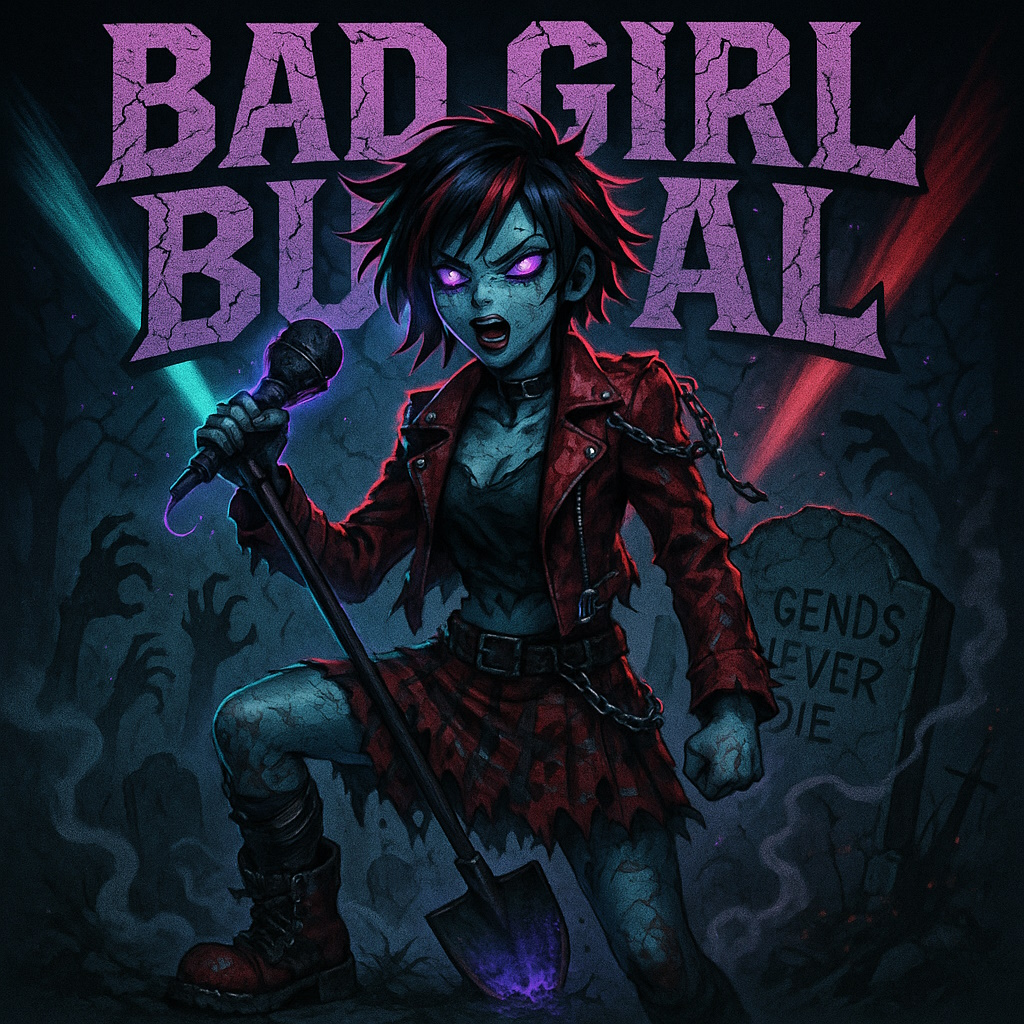 Hard rock and punk fusion with fierce female vocals and a tongue-in-cheek horror vibe, The song tells the story of a zombie girl who was cast out, buried, and hunted — but now she’s back with a vengeance and a wicked sense of humor, Dirty guitars, stomping drums, and sarcastic swagger carry a comedy revenge anthem full of undead confidence