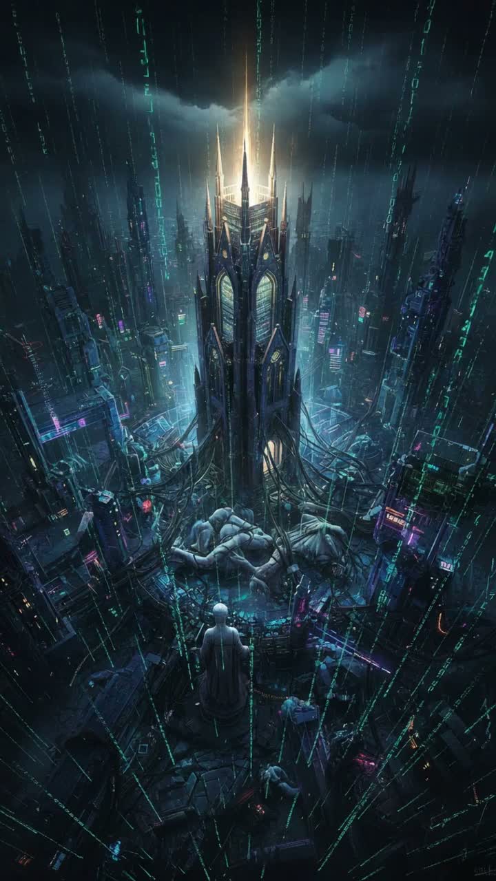 An instrumental Djent-infused Electronic Metal piece, It features a mid-tempo groove at around 130 BPM and an intense, mechanical mood, set in a Minor key, Heavily distorted 8-string guitars play tight, polyrhythmic chugging riffs with palm-muted staccato patterns, while massive EDM synthesizers provide layered bass drops and metallic lead melodies, The drums are programmed with punchy electronic kicks, industrial snares, and complex syncopated hi-hat patterns, A deep sub-bass synth delivers earth-shaking low-end pulses locked to the guitar riffs, The lead synth plays aggressive, soaring melodies with saw-wave tones during climactic sections, The production is modern and heavy, featuring aggressive sidechain compression, wide stereo imaging, glitchy digital effects, and a crushing yet polished mix