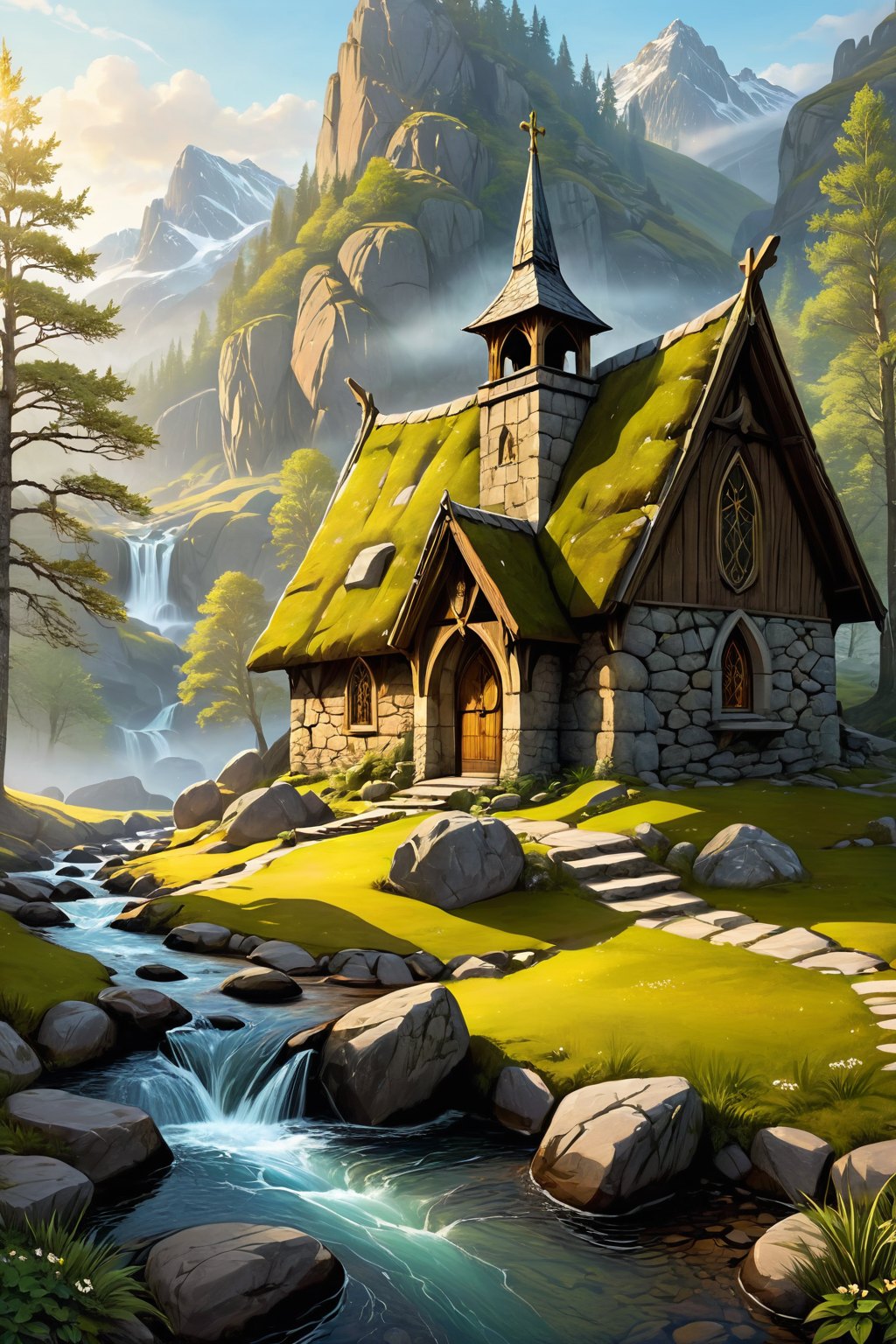 Ambient medieval western RPG soundtrack, subtle and atmospheric, warm natural resonance, faint drum accents spaced apart, ancient tavern-song aesthetics, gentle medieval glow, quiet introspective wandering, crisp alpine clarity, serene harp-led melodic rise, gentle harmonic shimmer, rustic fiddle sustains, simple folk rhythmic backbone, soft reverb from stone walls, gentle stream or river soundbed, gothic stave-chapel echoes, layered motif call-and-response, slow-building emotional swell