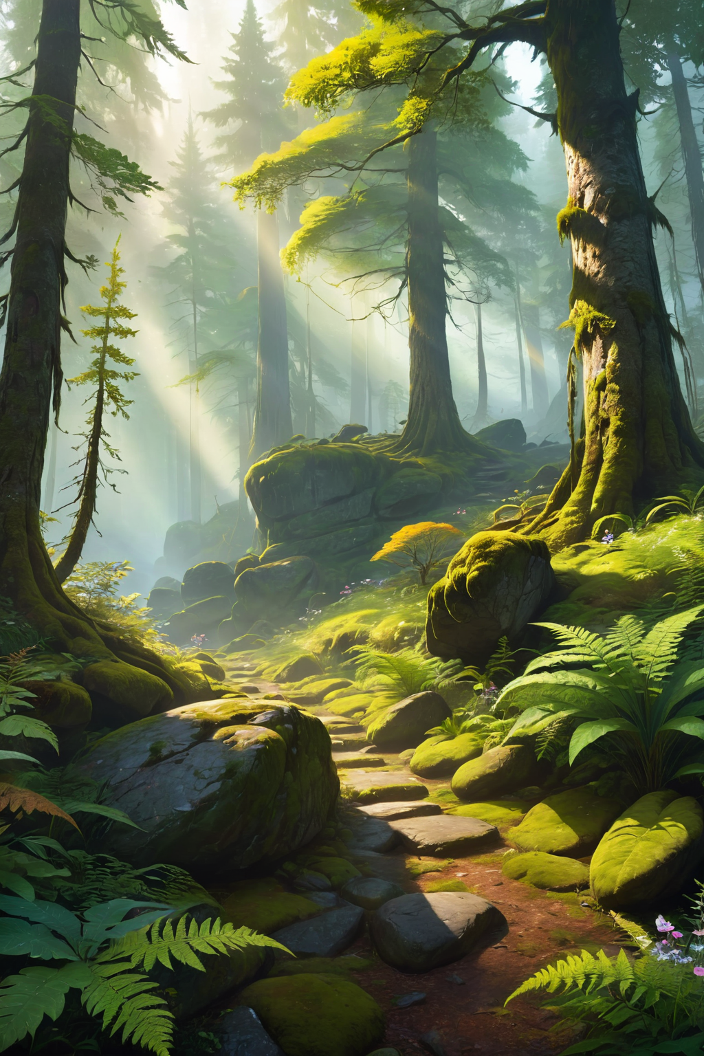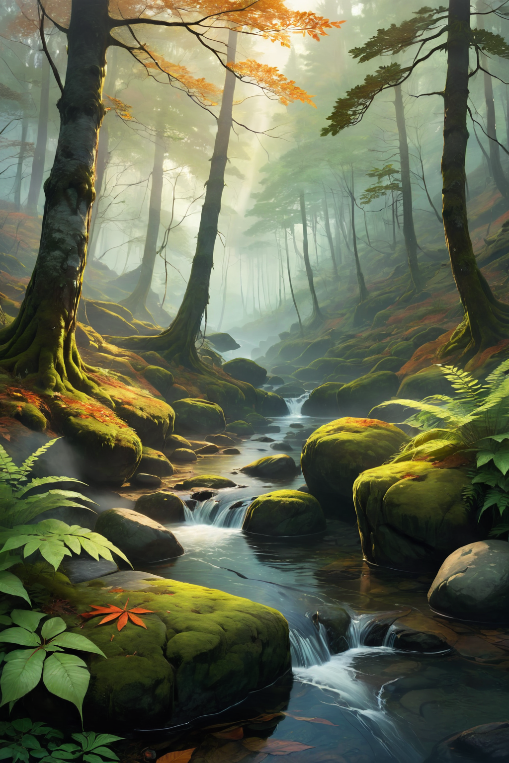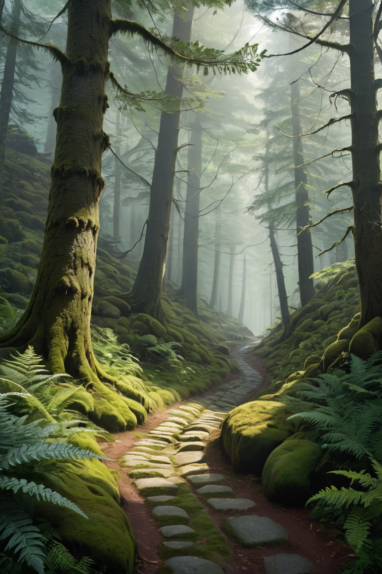 Ambient medieval western RPG soundtrack, subtle and supportive, Use only a few acoustic folk instruments: lute, harp, or bass flute, Simple melodic motifs in Dorian or Mixolydian mode, flowing gently, Slow, relaxed rhythms, Warm, rustic, and slightly misty texture, evoking the feeling of nature and soft rainfall, Atmosphere calm, serene, and reflective, evoking a quiet walk through the cold, green forests near Falkreath, with raindrops falling softly on leaves and moss, gentle streams flowing, and the scent of wet earth filling the air, ‑piccolo, ‑high flute, ‑tin whistle, ‑soprano flute, ‑strings, ‑fiddle