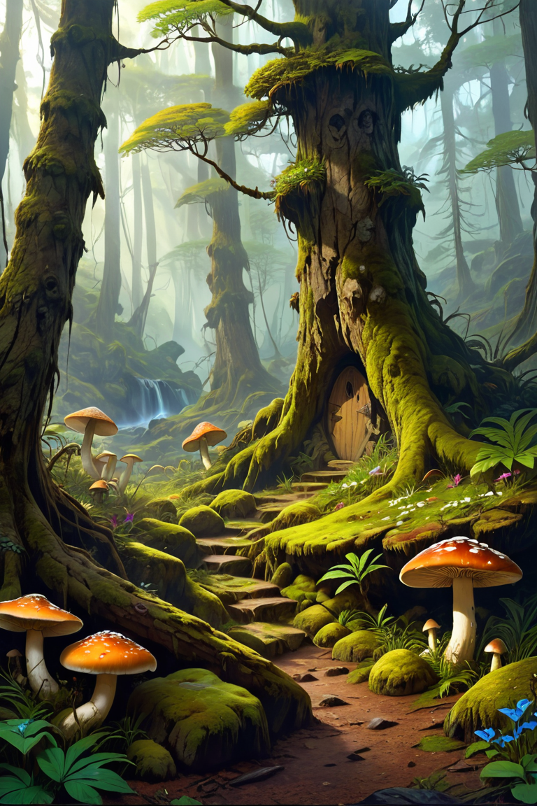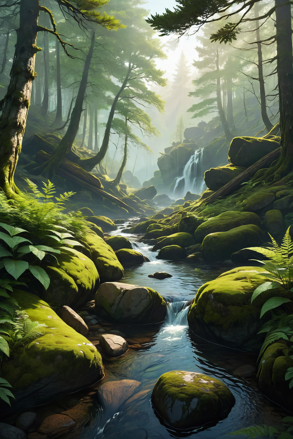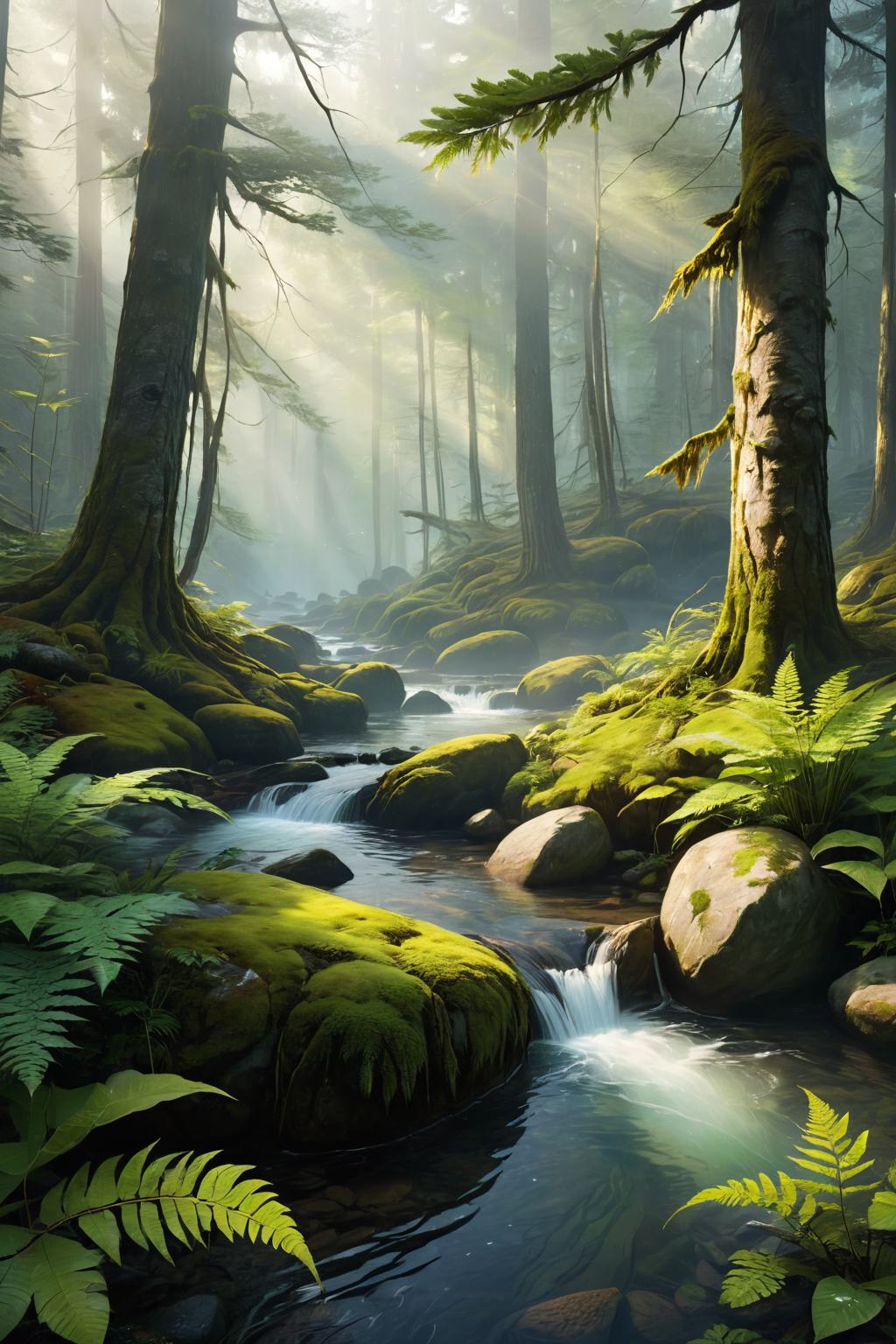 Ambient medieval western RPG soundtrack, subtle and supportive, Use only a few acoustic folk instruments: lute, harp, or bass flute, Simple melodic motifs in Dorian or Mixolydian mode, flowing gently, Slow, relaxed rhythms, Warm, rustic, and slightly misty texture, evoking the feeling of nature and soft rainfall, Atmosphere calm, serene, and reflective, evoking a quiet walk through the cold, green forests near Falkreath, with raindrops falling softly on leaves and moss, gentle streams flowing, and the scent of wet earth filling the air, ‑piccolo, ‑high flute, ‑tin whistle, ‑soprano flute, ‑strings, ‑fiddle