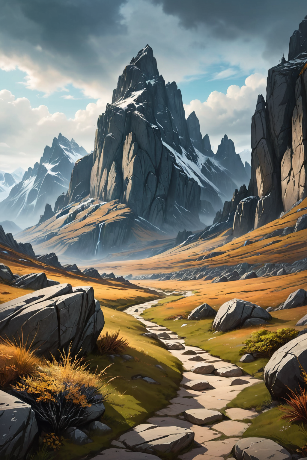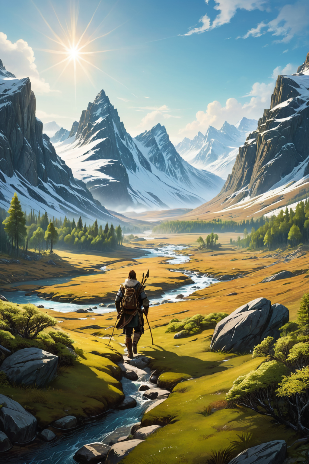 Ambient medieval western RPG soundtrack, subtle and atmospheric, Early bardic traditions, subtle celesta sparkles, gentle flowing lute rhythm, soft plucked accompaniment, warm natural resonance, expansive mountain quiet, pristine natural tone, counter-melody on lyre, fantasy RPG folk lineage, earthy hand percussion, soft instrument entry after a phrase, lyrical rustic contour, gentle secondary motif