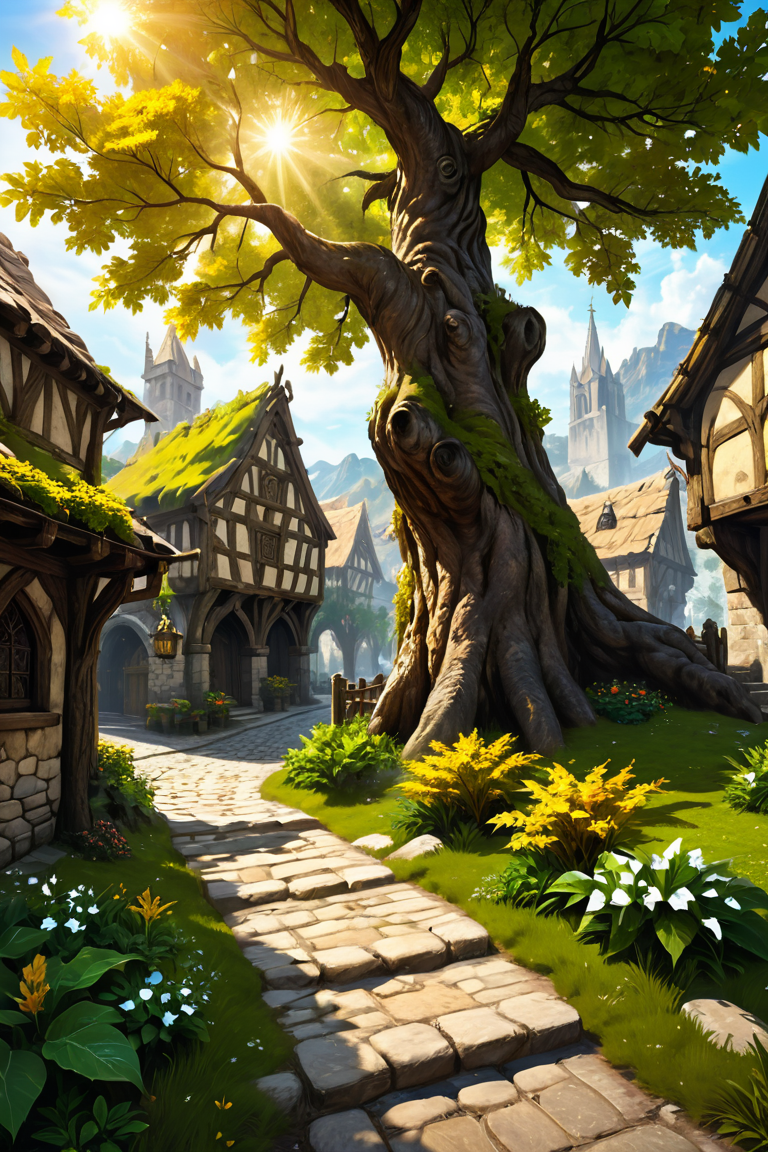Ambient medieval western RPG soundtrack, subtle and supportive, Use only a few acoustic folk instruments from the following: lute, harp, bouzouki, bass flute, shawm, or guitar, Simple melodic motifs in Dorian or Mixolydian mode, flowing gently, Moderate, relaxed rhythms, Warm and rustic texture, Atmosphere inviting, calm, and pleasant, evoking a gentle sense of beginning a journey in a quiet village at dawn, ‑piccolo, ‑high flute, ‑tin whistle, ‑soprano flute, ‑strings, ‑fiddle