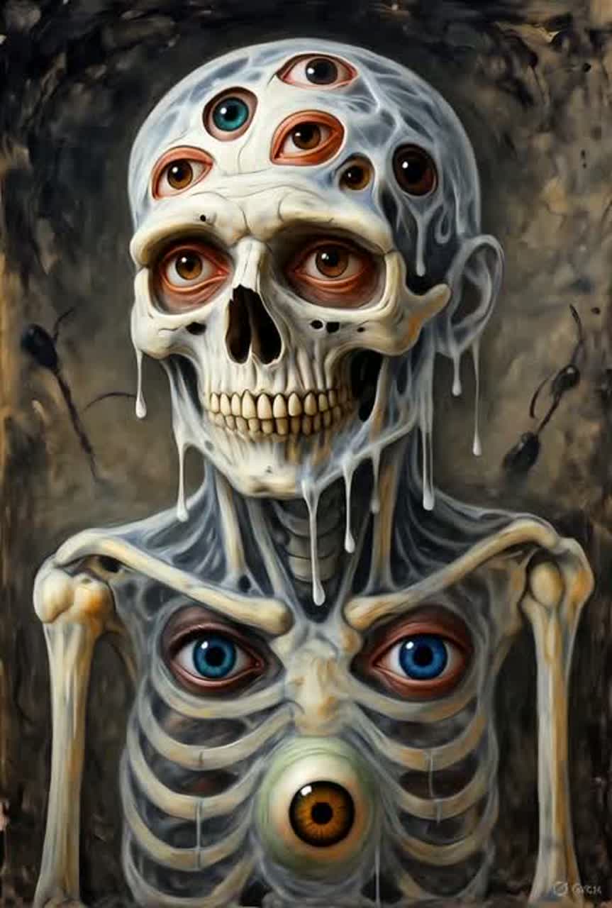 Prompt: Create an experimental song that fuses hardcore punk, avant-garde death metal, hip-hop, musical theater, and opera, The lead vocalist is a male with an elderly voice, using strong vibrato, incorporating beatboxing, a cappella sections, layered chorus harmonies, rap, guttural growls, and death metal screams, The vocal mix is prominent and upfront, The sound is immersive and three-dimensional, featuring low, heavy, distorted guitars, accordion, saxophone, piano, theremin, and violin, with a drum and bass rhythm section, Include tempo changes, key modulations, and turntable scratching, The tempo is mid-paced, with an experimental techno influence