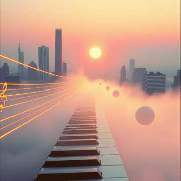 The new age track opens with spacious synth pads and airy textures, joined by delicate piano melodies and subtle chimes, Gentle electronic percussion pulses softly under layers of evolving ambient sounds, creating a soothing, atmospheric soundscape that flows continuously