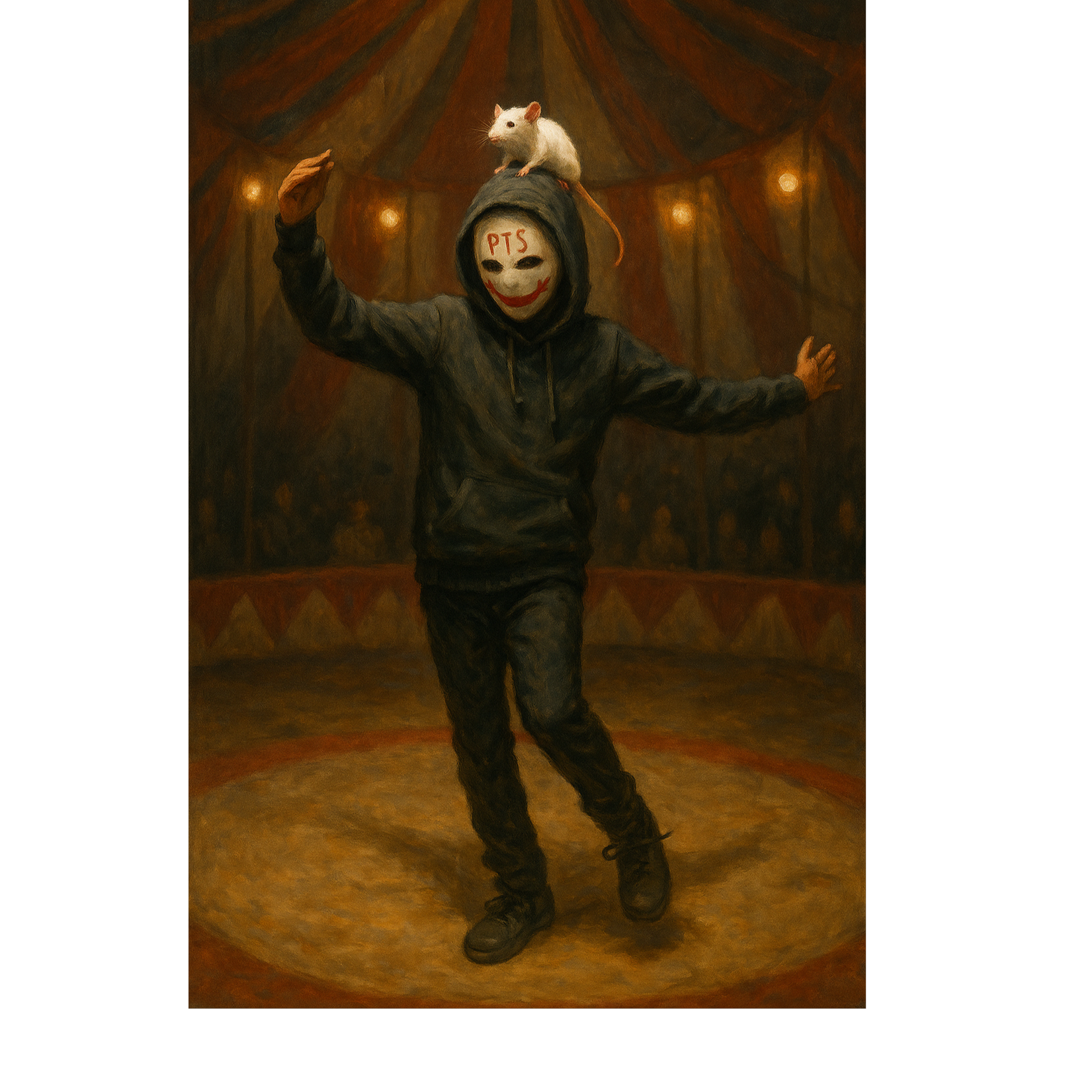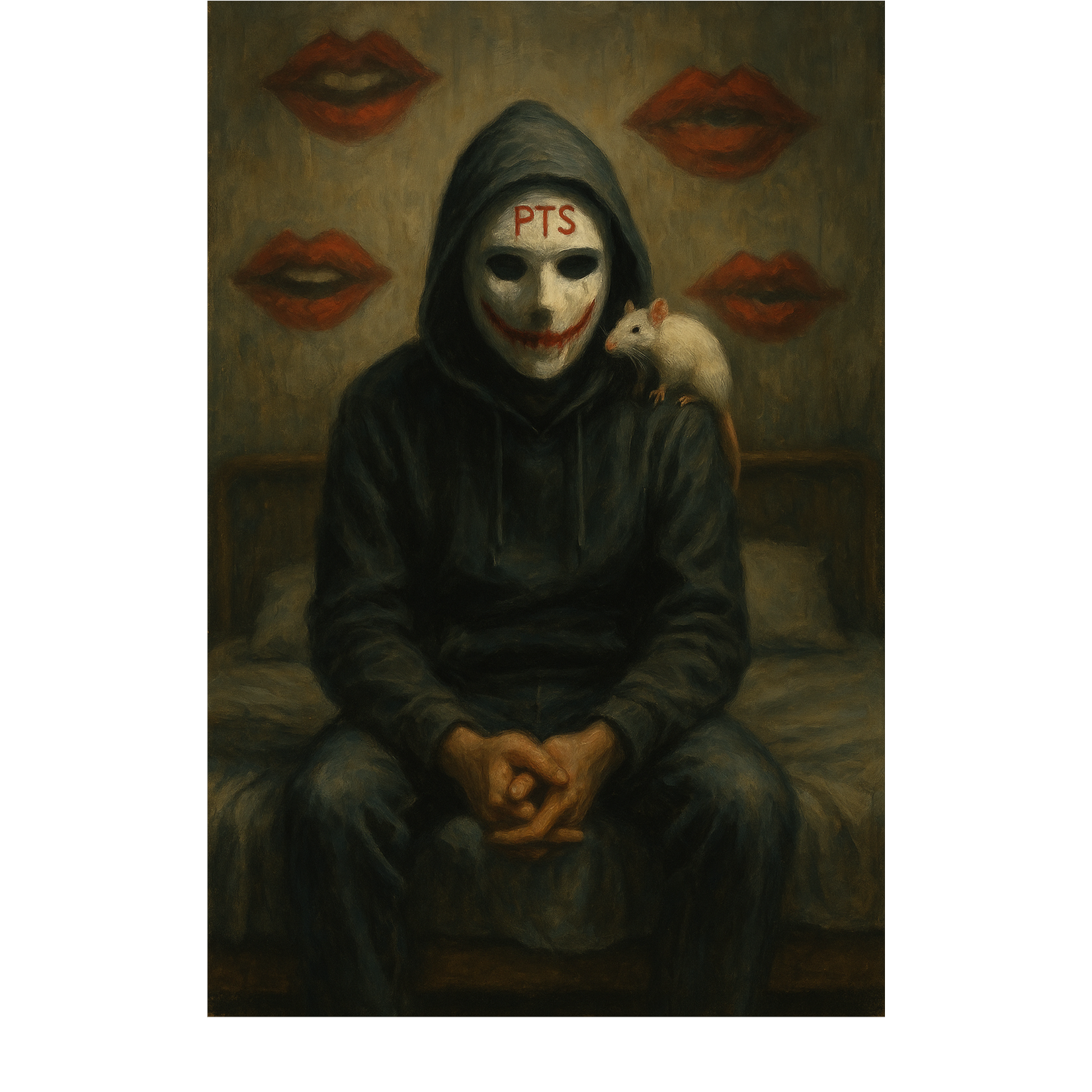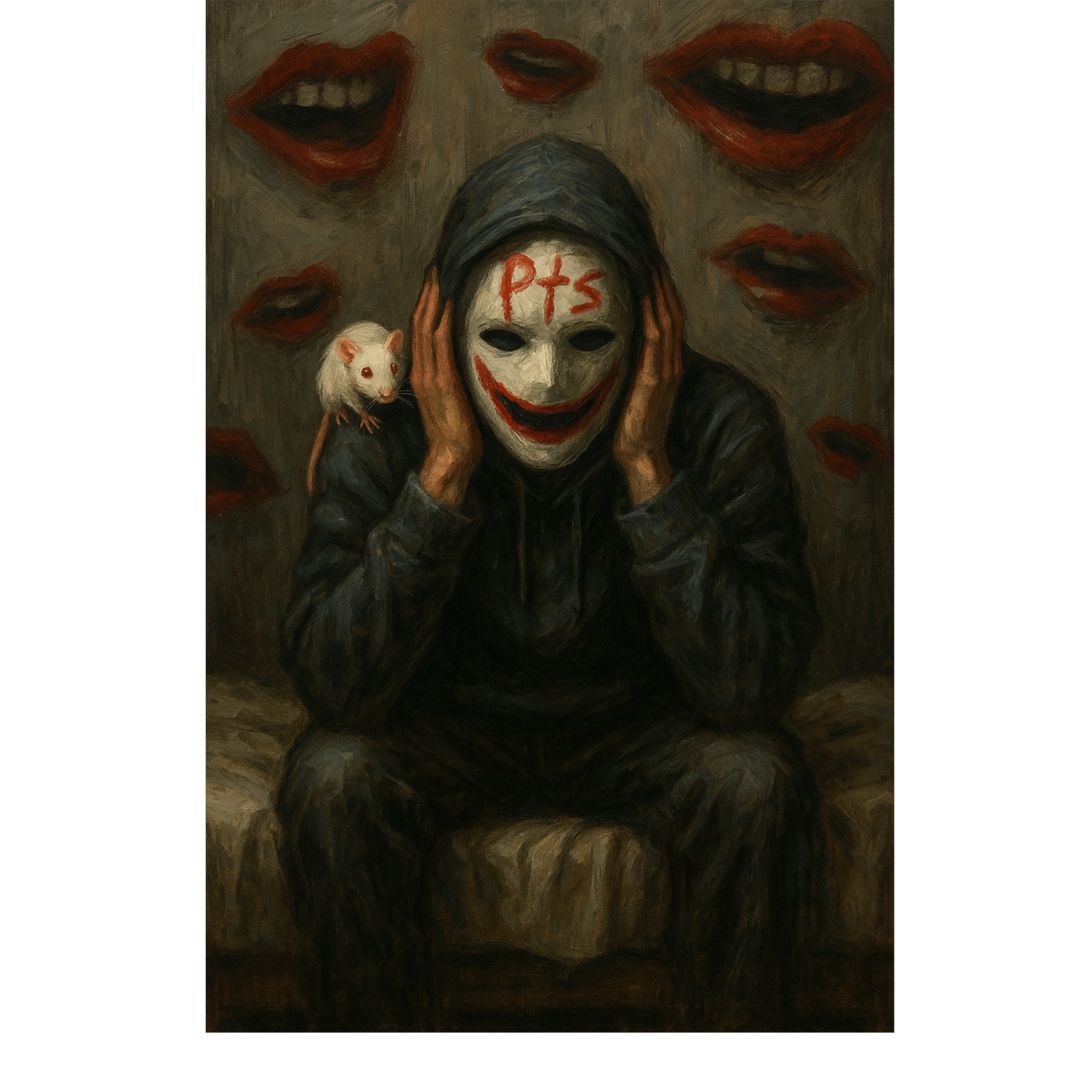 Dark, dramatic piano and lo-fi textures, Inspired by Ren's "Sick Boi" โ intense spoken word flow, aggressive personality switches, raw emotional energy, mental health themes, eerie atmosphere, theatrical delivery, and sharp social commentary, Chaotic but controlled energy, Heavy beats with minimalistic arrangement