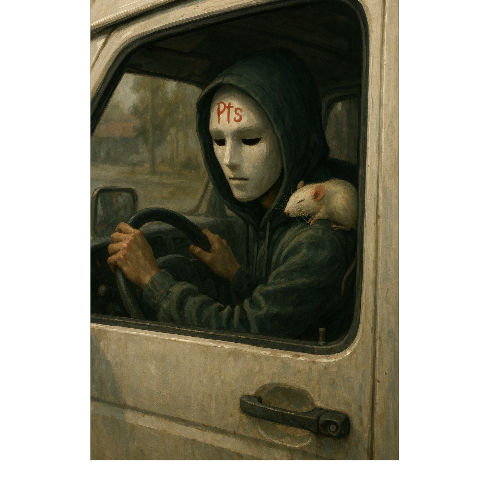 Dark, Dystopian, Male voice, gritty cinematic FX, Madness, swing, violon, Inspired by Ren's "Sick Boi" โ intense spoken word flow, aggressive personality switches, Glitch, FX, Crazy, hauntingly poetic and cryptic soundscape, Dreamlike, Vocals should be ethereal, intimate, and emotionally fragile, raw emotional energy, mental health themes, eerie atmosphere, theatrical delivery, and sharp social commentary, Chaotic but controlled energy, Heavy beats with minimalistic arrangement, weighing atmosphere, the protagonist moves during a cold winter day, he evokes his worries and his regrets with bitterness