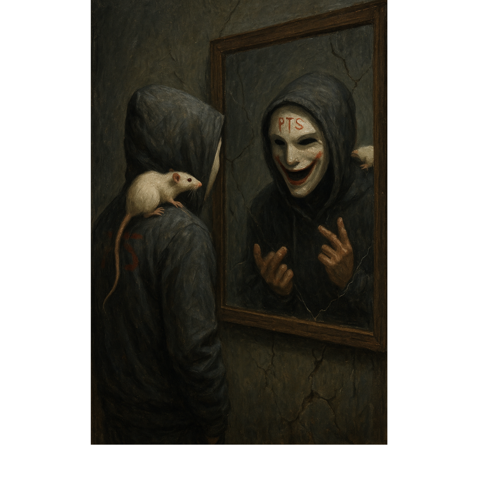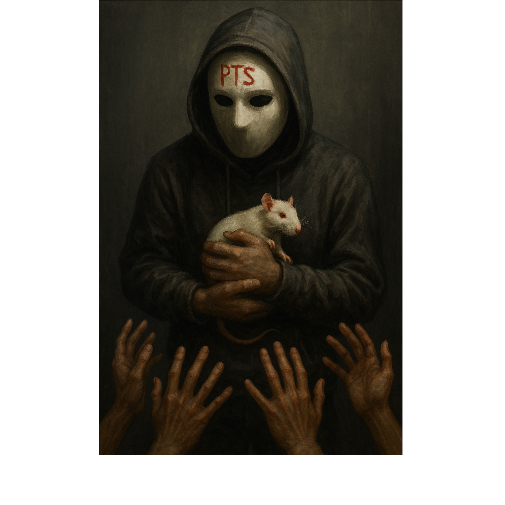 Strange, Experimental, Reverse prayer, Dark, intense spoken word flow, personality switches, raw emotional energy, mental health themes, eerie atmosphere, theatrical delivery, and sharp social commentary, Chaotic but controlled energy, Heavy beats with minimalistic arrangement, Dark ceremonial, glitch, male voice, experimental dark, ambient electronic, cinematic tension, dystopian slowcore