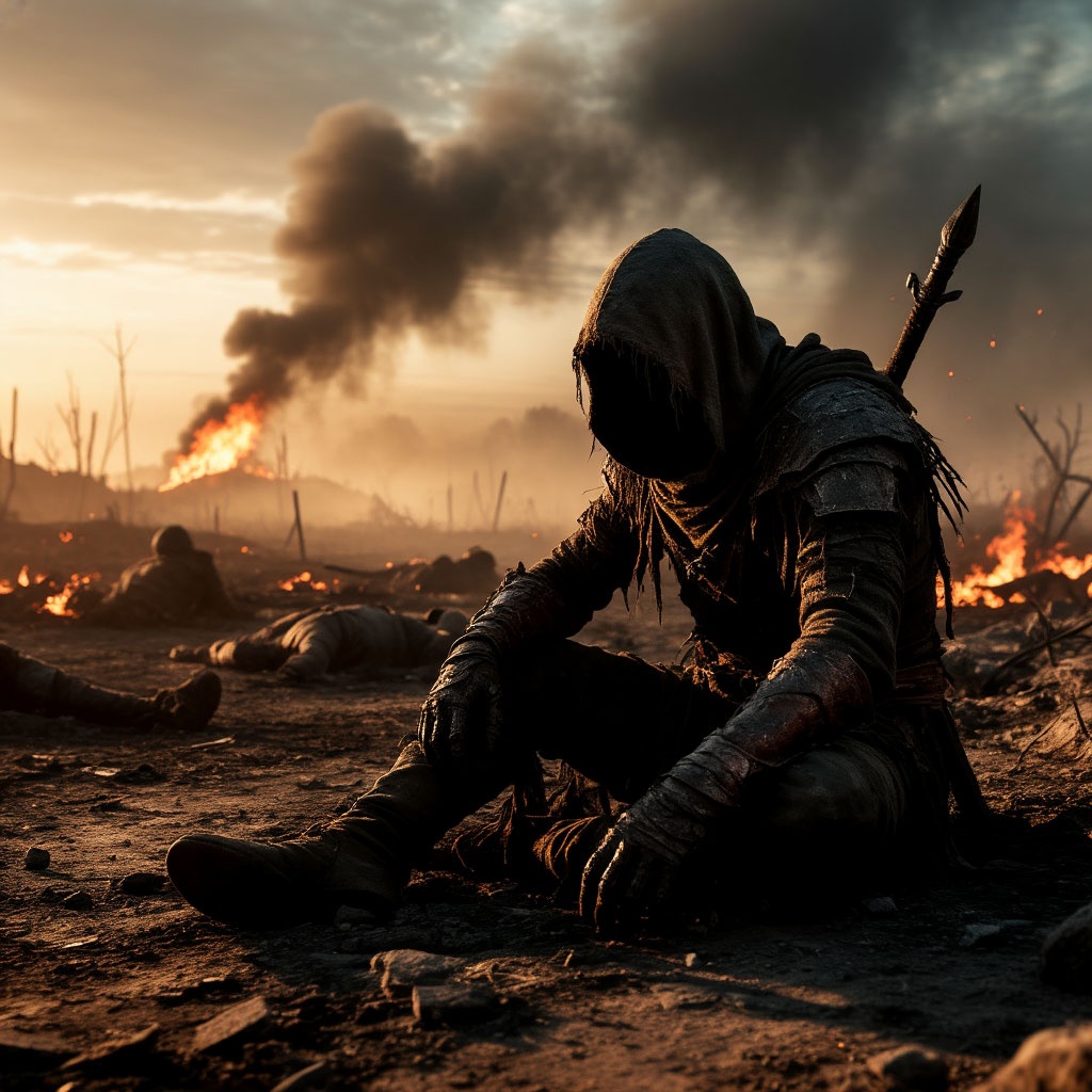 Compose a mystical and atmospheric song featuring a deep baritone male vocal as the lead, conveying strength and introspection, Blend ambient, neoclassical, and dark cinematic styles to create a vast cosmic soundscape filled with ethereal pads, subtle strings, and spacious reverberation, Include haunting, minimalistic instrumental layers with occasional dramatic swells to reflect moments of fear, awe, and acceptance, Use tempo 90-110 BPM to emphasize the weight and depth of the narrative, The mood should be solemn, contemplative, majestic, with a profound emotional resonance and a touch of melancholy and hope