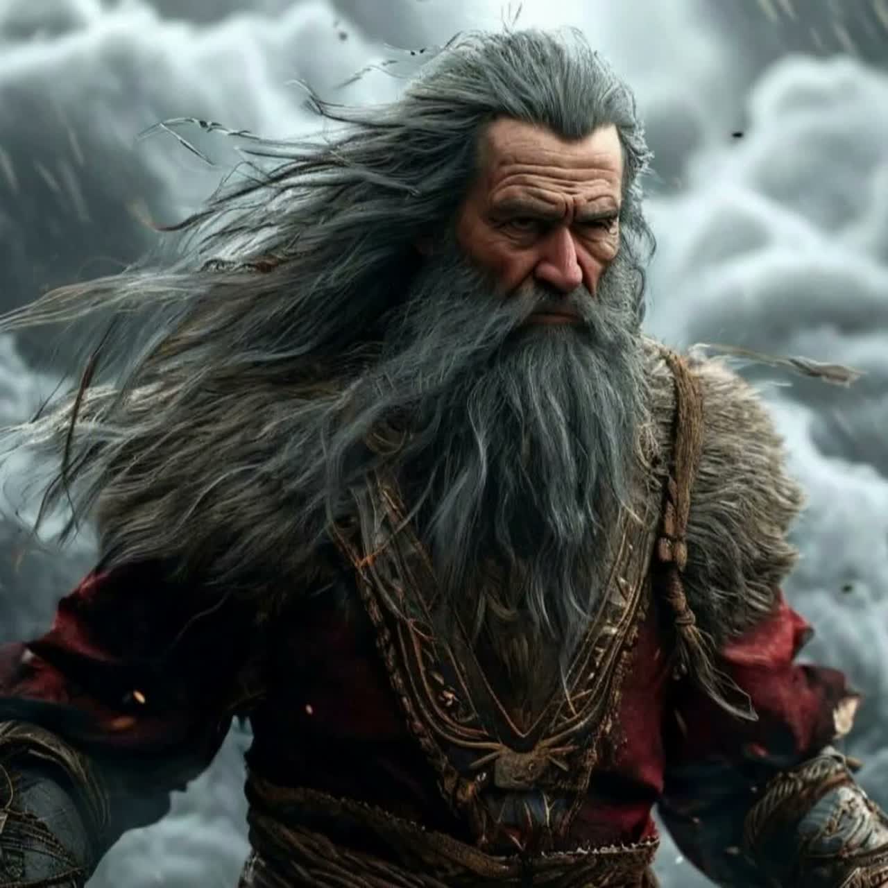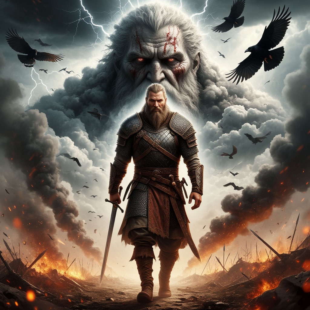 Deep baritone chants set an ancient tone over a droning didgeridoo and raw acoustic guitar, Frame drum and war horn pulse with ritualistic force, joined by driving shamanic percussion, Ethno-orchestral layers swell through each epic section, building to an expansive folk climax