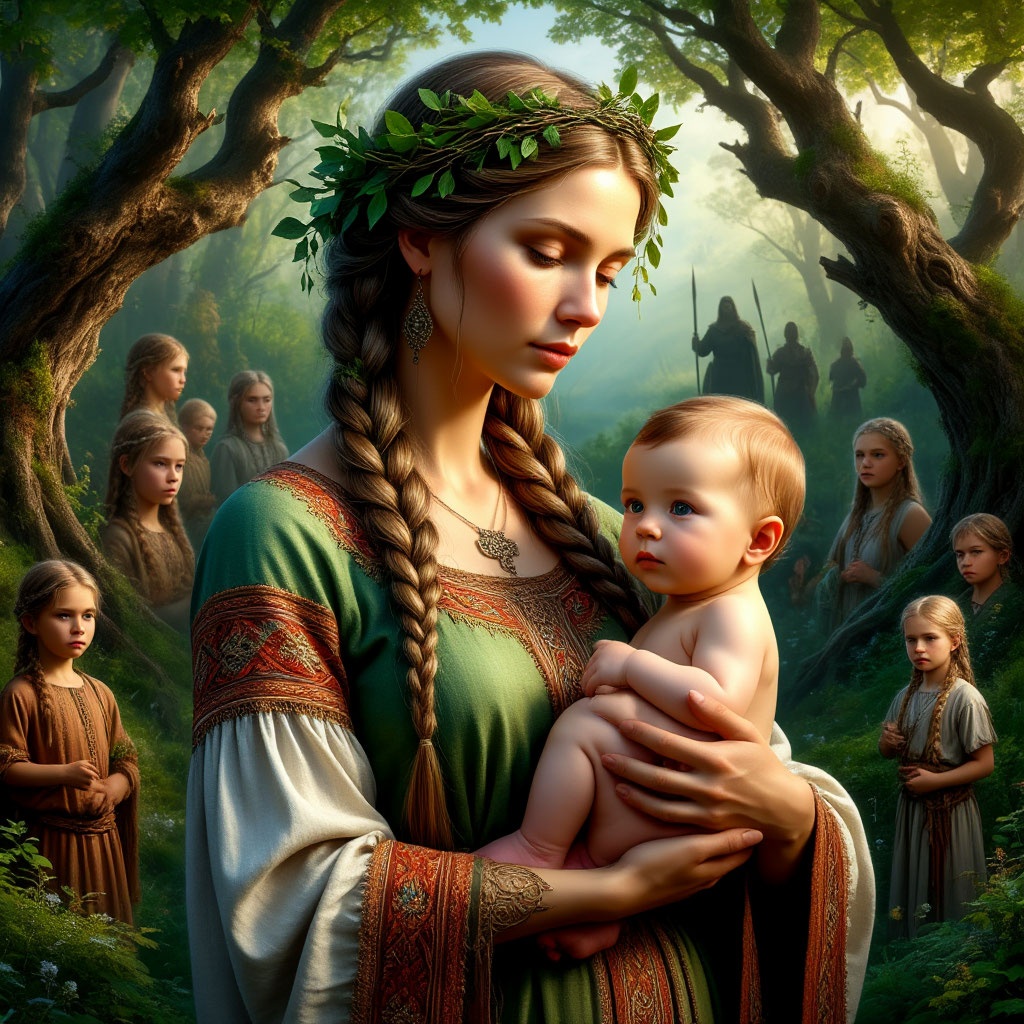 The song opens in 7/8 with sparse, minimal tribal percussion and soft drums, forest SFX gently mixed in, Deep textured pads and shifting rubato rhythms build suspense, Fluid, echoing flutes invoke Slavic nu-folk, while panoramic Belorussian ambient female vocals lead, layered in rich harmonies, A powerful clear female voice with dramatic, wide-ranging, expressive melodic lines rises over the soundscape—her theatrical delivery weaving between incantation and song, The rhythm remains distinct but evolving, while the binaural mix in 432 Hz creates an immersive, mystical listening field, Ambient deep house pulses subtly with moody indie blues hues; production remains crisp and immersive, balancing cinematic ritual and modern mystique