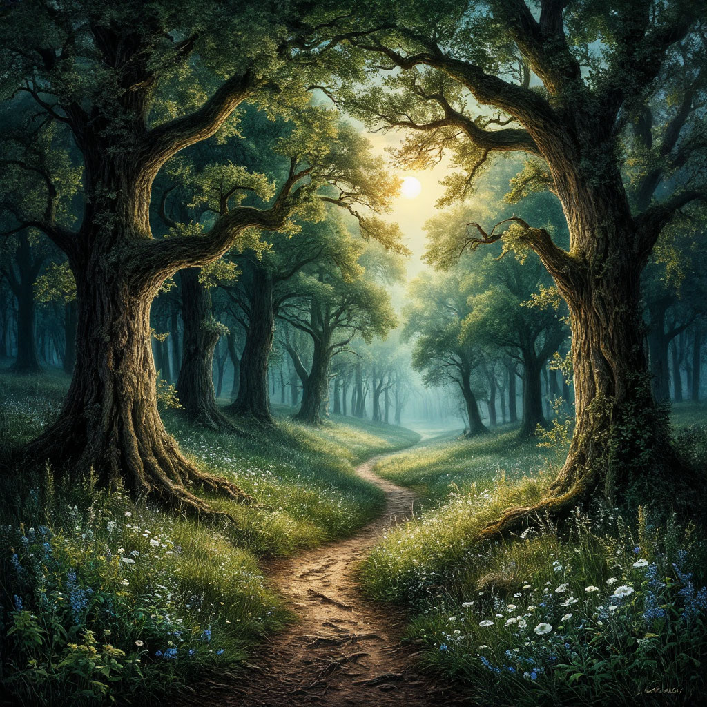 This dark mystic trance celtic dance track opens with ritualistic tribal drums in shifting 7/8 to 5/6, airy pads, and reverb-soaked riffs, Old man's raspy lead entwines with throat singing and overtone drones, Uptempo, polyphonic choir textures, soulful infused, create a layered, multiple-ego effect, Bluesy bass pulses support the trance groove, as the rich vocal blend and mysterious harmonies immerse listeners in the shamanic dance journey, 108 BPM to 144 BPM, Belorussian folk, Experimental, Radio Ready, Cimenatic, Dolby Atmos