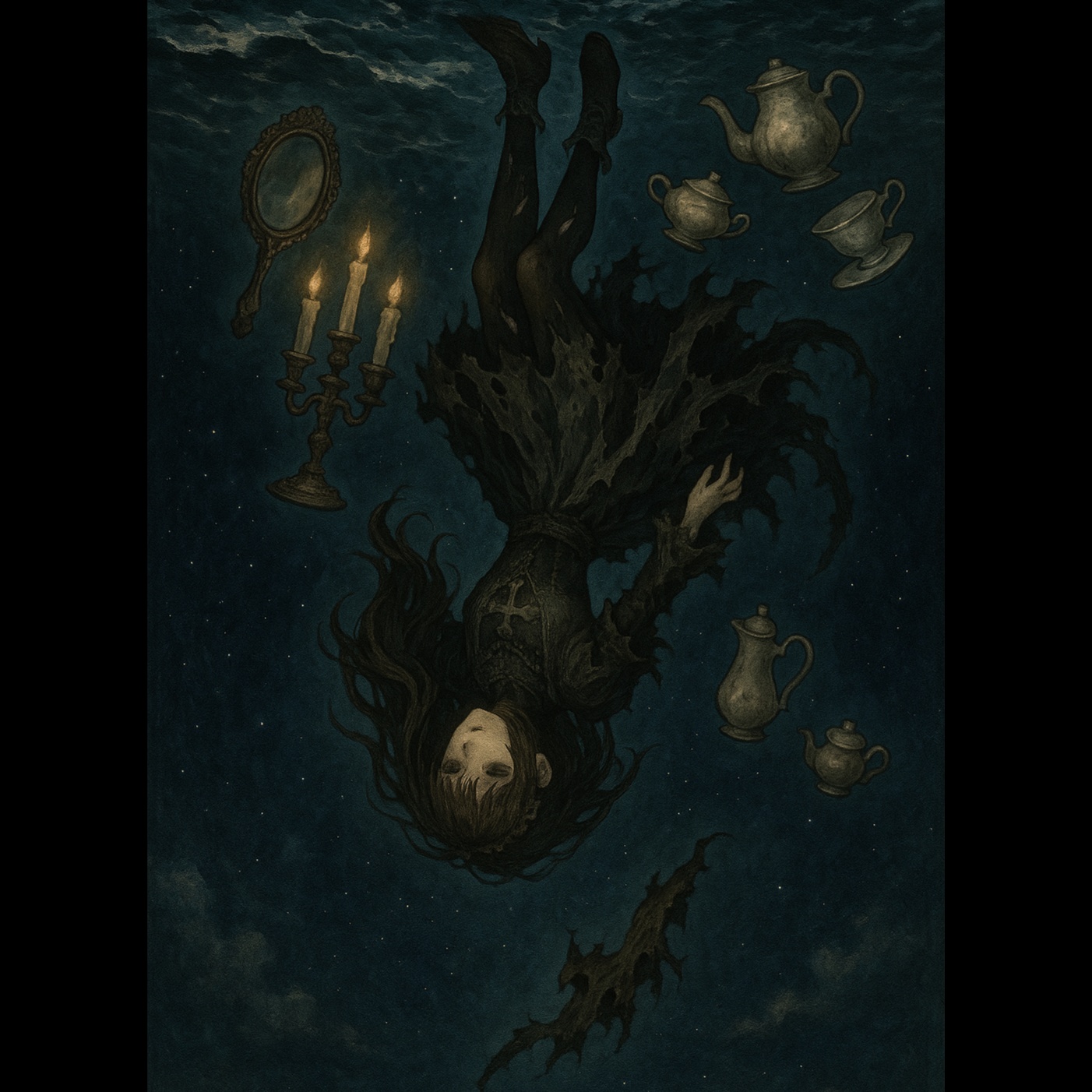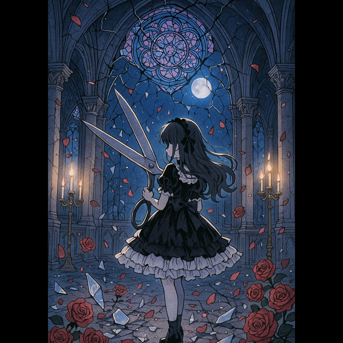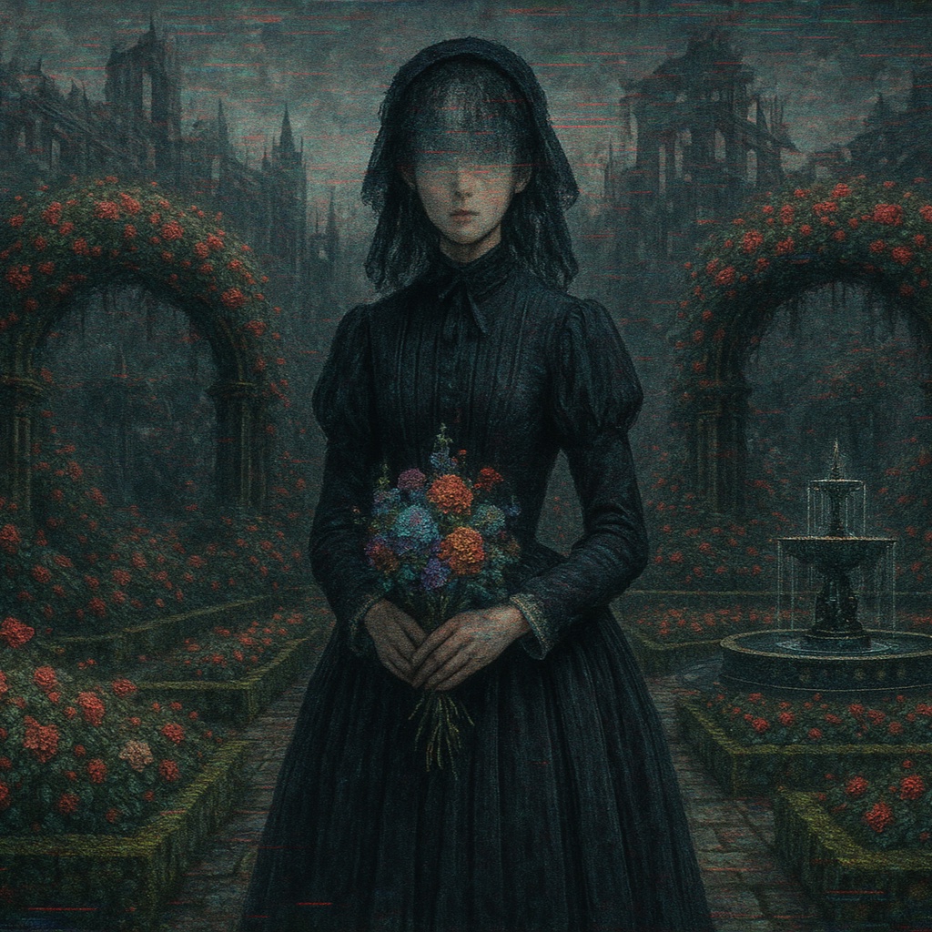 Dark fairytale EDM fused with gothic hardcore and artcore, surging past 200 BPM, The core is distorted gabber kicks pounding like a cathedral’s broken heart, reinforced by sub-bass rumbles and sharp snare bursts, Glitch FX, granular cuts, bitcrushed sweeps fracture the soundscape, while modulated synths scream with twisted baroque elegance, Dark strings, organ swells, harpsichord stabs and haunted orchestral layers, Between eruptions, surreal piano fragments appear—fragile, dissonant—before collapsing into drops where tempo mutates between half-time and manic velocity, Atmosphere: a horror fairytale realm of whispers, ticking clocks, distant bells, reversed lullabies, Flow: begin with a ghostly intro, rise into climaxes of distortion, then descend to an outro where broken motifs fade to silence, Production must be cinematic, high-quality, professional, uniting hardcore aggression with gothic beauty in a single dark narrative, A song that sounds like a difficult song from a music game, ‑pop, ‑soft rock, ‑lo-fi, ‑jazz, ‑acoustic, ‑indie folk, ‑rock, ‑choir pad