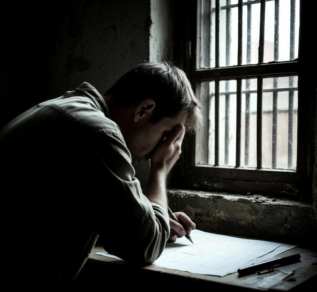 Generate a raw, underground Russian storytelling rap track, Deep, gritty male vocals narrating with a slow, deliberate flow over a minimalist boom-bap beat, Heavy vinyl crackle and dusty sampler aesthetic