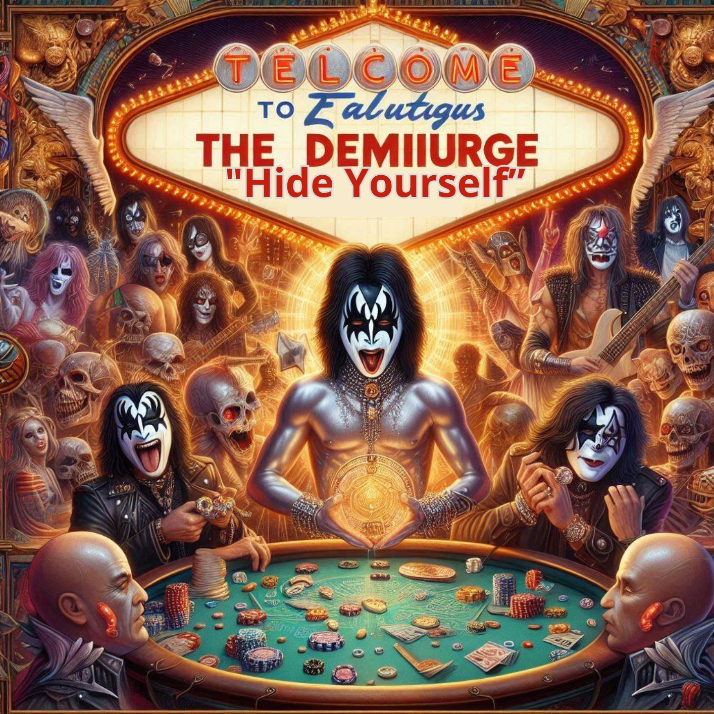 [deep male vocals] [sinister crooning] [mocking tone] [horror narration] [sleazy hard rock] [industrial blues] [glitchy guitar solos] [1950s sci-fi synths] [chaotic energy] [punchy drums]