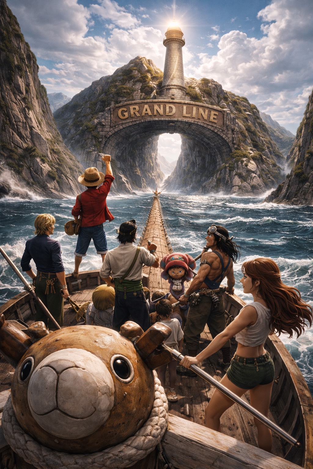 Japanese anime opening, energetic shonen rock, electric guitars, taiko drums, orchestral strings, epic choir, heroic male vocal, uplifting chorus, adventure vibe, 100 bpm