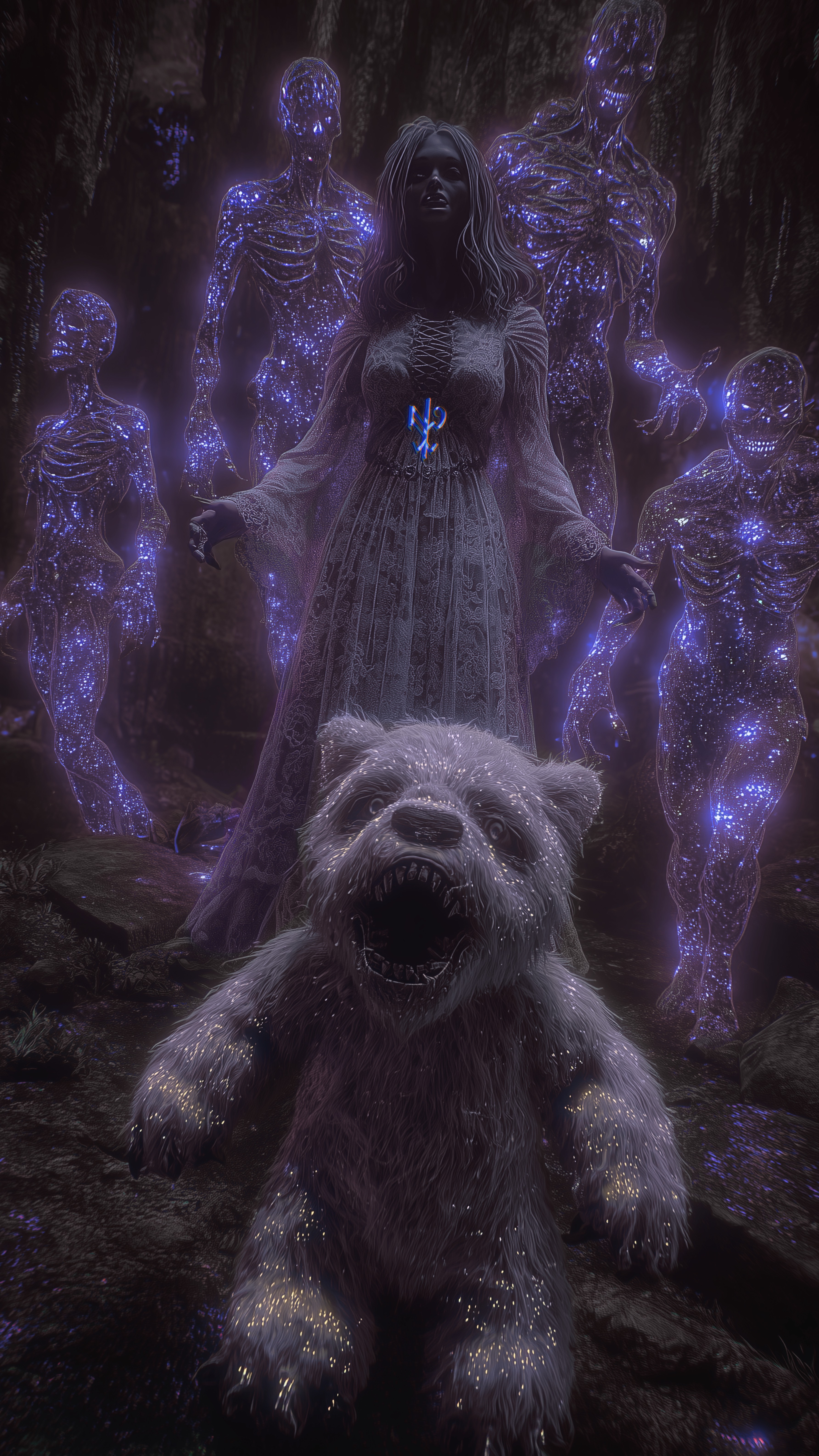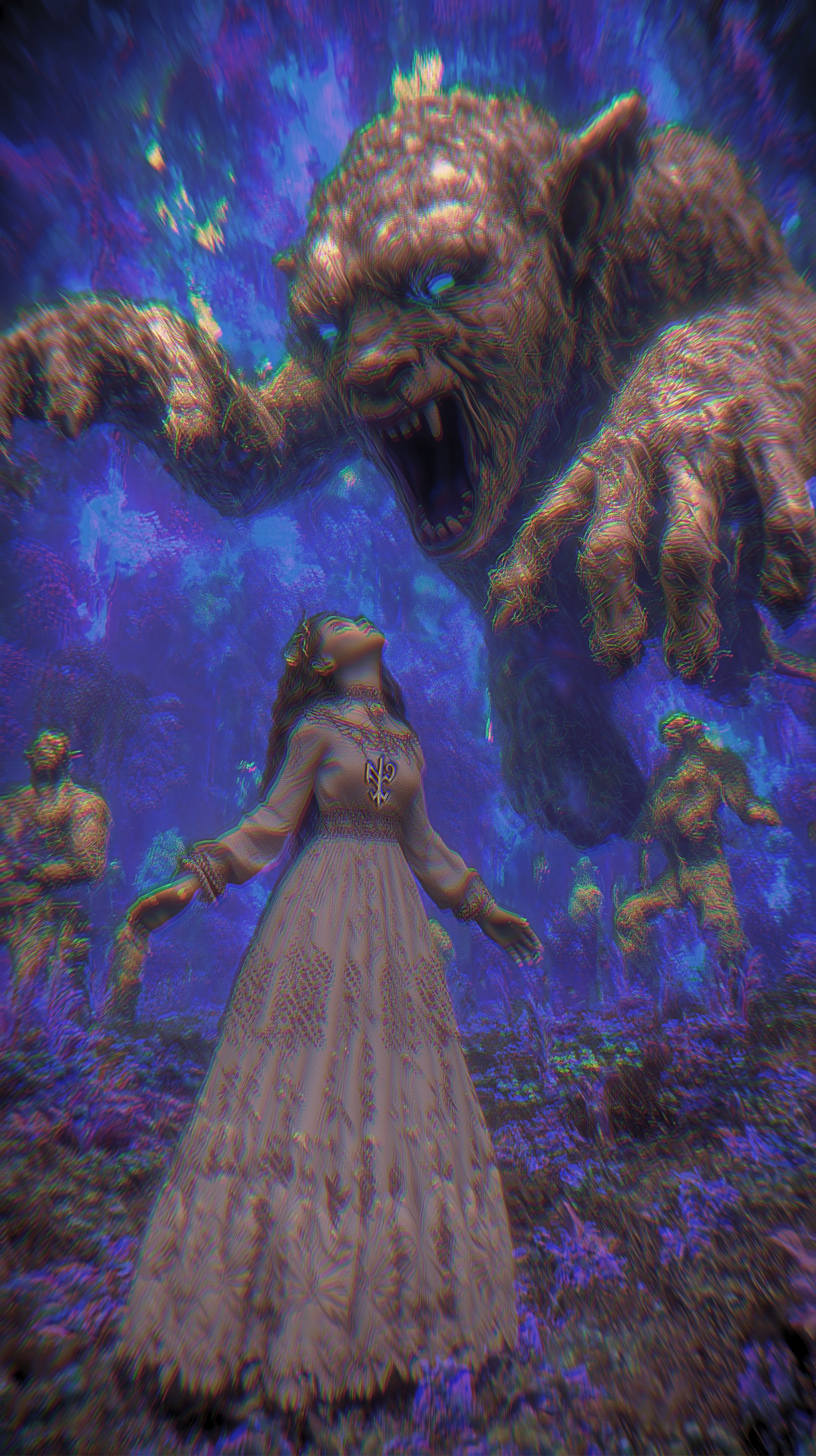 [Genre: Avant-Garde Trip Hop, Dark Pop, Electro Rock, Symphonic Electronica] [Tempo: 84–90 BPM, heavy trip-hop groove with shifting half-time breaks] [Instruments: Deep analog bass, layered acoustic-electronic drums, cinematic strings, distorted synth leads, glitch-processed guitars, percussive piano hits, reversed textures, orchestral pads] [Vocals: Studio-quality; expressive female lead with dark-pop tone; alternating between spoken-sung trip-hop phrasing and soaring melodic lines; layered whispers and chant echoes; no distortion on lead] [Mood: Liminal, haunting, poetic, caught between realms; serious yet surreal, ritualistic and cinematic] [Production: Studio polish, wide stereo, strong low-end, crisp highs, dynamic contrast; sparse verses with bass + strings, choruses dense and anthemic, bridge explodes into symphonic chaos; ending dissolves into glitch-fractured lines and fading orchestral reverb]