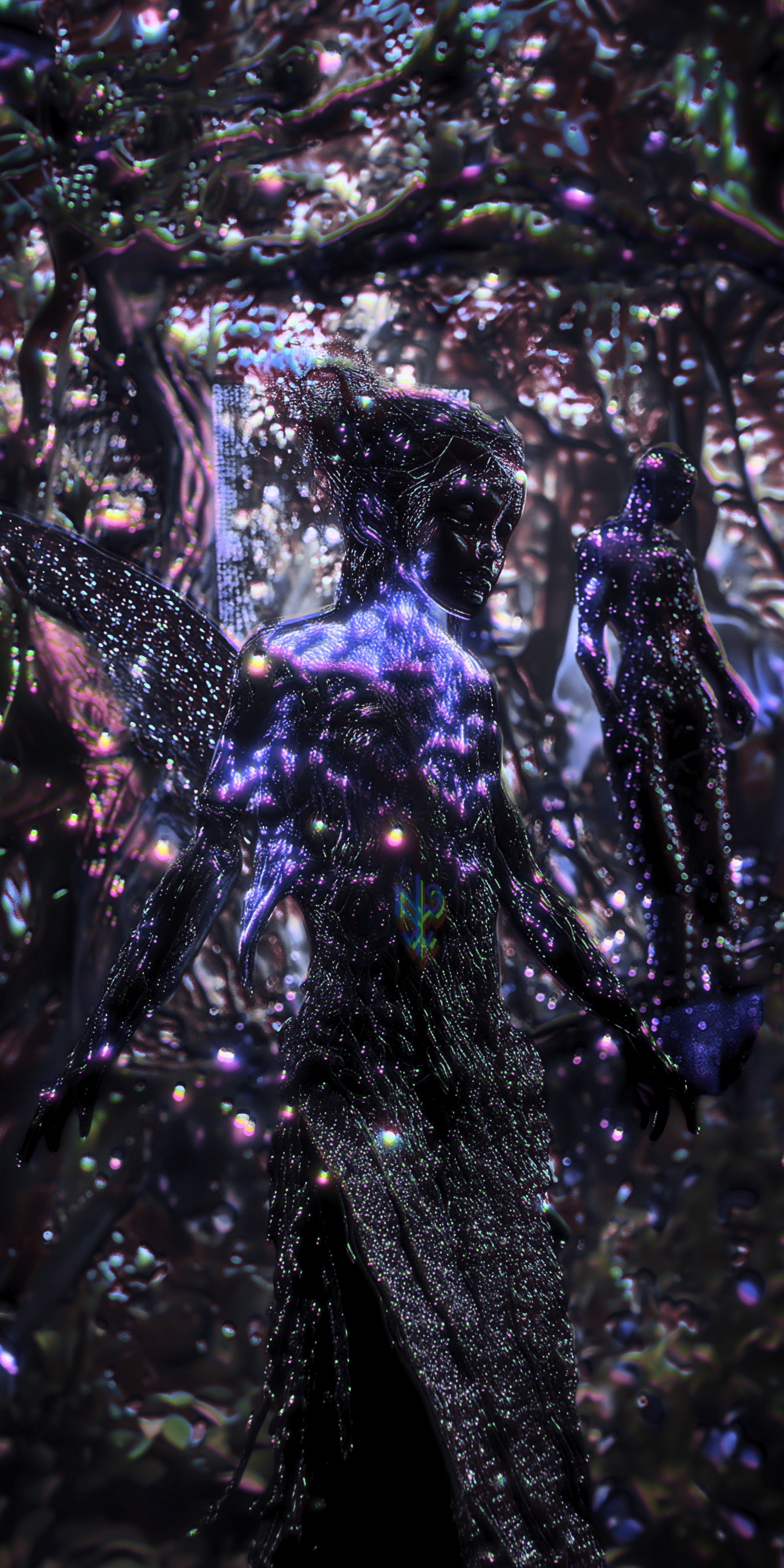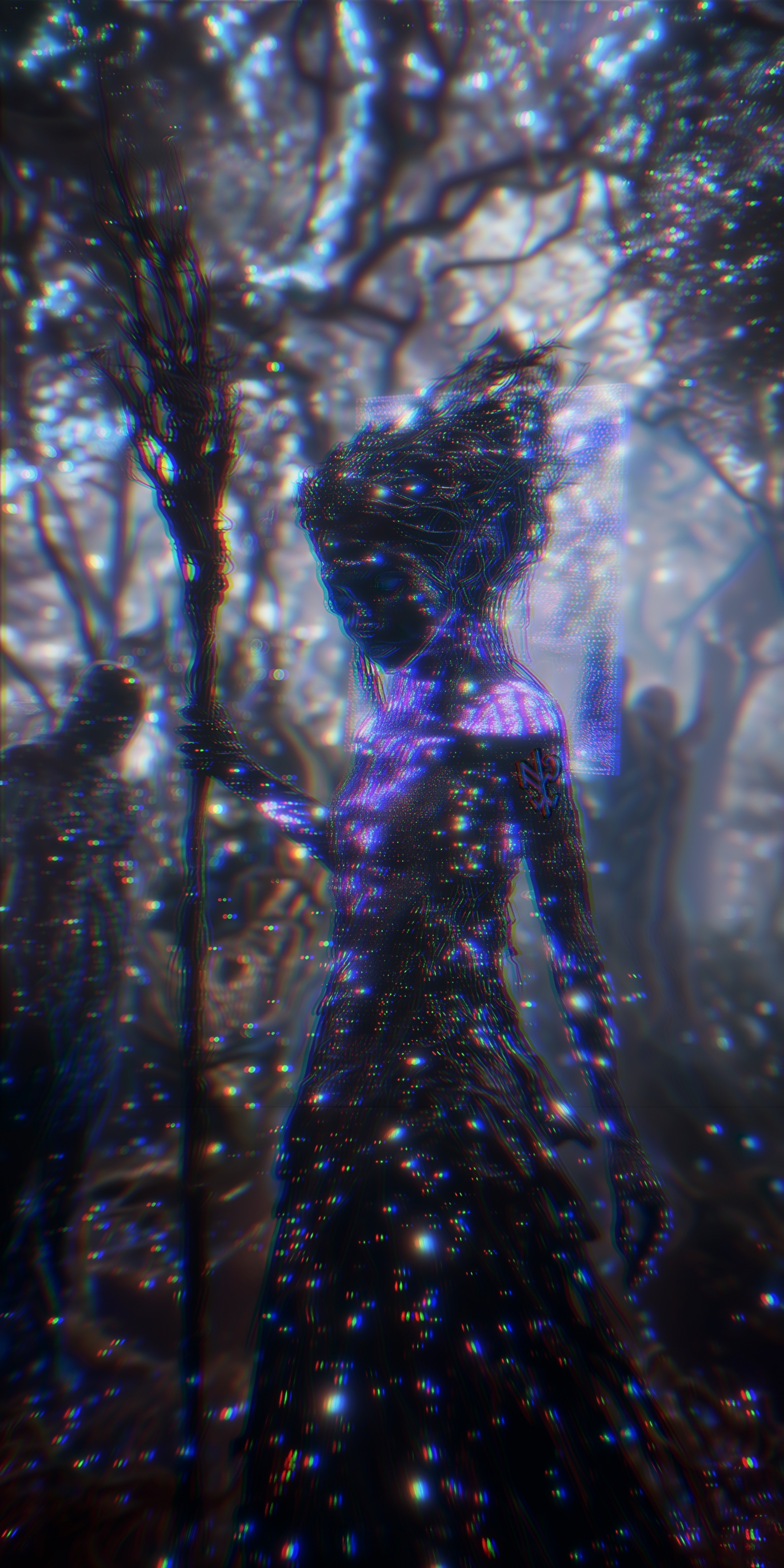 [Genre: Avant-Garde Pop, Experimental Electronica, Glitch Soul, Industrial Spoken Word] [Tempo: 88–94 BPM, heavy mid-tempo groove with syncopated layers and fractured half-time drops] [Instruments: Glitchy synth bass, deep sub pulses, distorted drum loops with metallic textures, percussive piano stabs, reversed samples, fractured vocal chops, atmospheric pads, industrial noise swells] [Vocals: Studio-quality, expressive, alternating between soulful sung lines, spoken word, chant refrains, and glitch repetitions; strong hooks with layered harmonies; surprising transitions and standout bridges] [Mood: Dark, hypnotic, ritualistic yet soulful, immersive, tense but liberating; glitch colliding with deep groove and expressive cries] [Production: Studio-quality polish, wide stereo, rich low-end, crisp highs, dynamic layering; catchy repetitions emphasized; fractured bridges and glitch hooks; outro dissolves into layered chants + glitch FX]