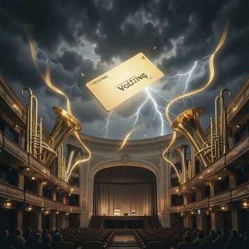 A high-energy electroswing track with a driving beat and prominent brass instrumentation, The tempo is upbeat, around 120-130 BPM, The key is minor, creating a slightly mysterious yet playful atmosphere, The primary instruments are a drum kit providing a swing rhythm, a walking bass line, and a brass section featuring trumpets and trombones playing staccato melodies and harmonies, A prominent feature is a scratch sound effect, reminiscent of a DJ scratching vinyl, used as a rhythmic punctuation, The song structure is primarily instrumental, with a clear intro, main theme, and a short vocal interjection, The production is clean and bright, with a good separation of instruments and a punchy mix, The brass has a slightly retro, big band feel, while the electronic drums and bass give it a modern edge, There are no traditional chord progressions in the provided segment, but the bass line implies a minor key harmony, The melody is catchy and repetitive, driven by the brass section