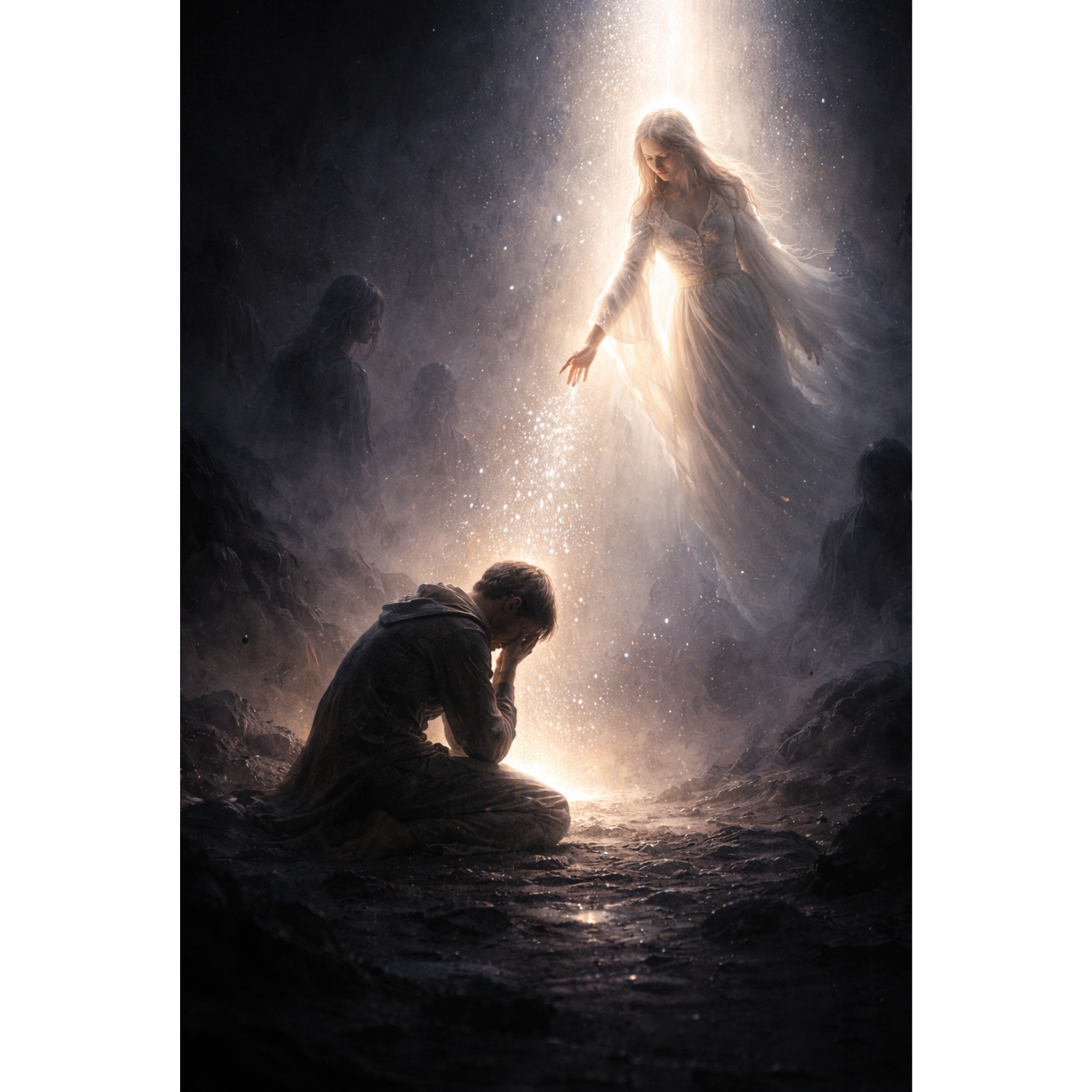 Reflective epic ballad merging classical orchestration and ambient textures • clear female lead vocal—pure, crystalline, emotionally nuanced • layered harmony vocal overdubs with soft choir and vocal pads • piano and gentle acoustic guitar base, progressively blended with subtle synth atmospheres • rich string arrangement crescendoing toward a tranquil peak • occasional harmonic chanting or vocal codes; ethereal reversed phrases for texture • restrained percussion and orchestral swells for controlled rise and release • evokes mystery, peace, layered identity, poetic introspection • ideal for spiritual or narrative storytelling with emotional weight • [POETIC VOCALS] [AMBIENT HYBRID] [LAYERED HARMONIES] [STRING EMOTION] [MYSTICAL CHANT] [CINEMATIC BALANCE]