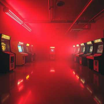 Male vocals, 80s synth horror rock fused with industrial rock, Mid-to-fast tempo, tense and relentless, The song feels like stepping into a familiar arcade that slowly turns hostile and alive, Vocals are raw, urgent, and slightly unhinged — human frustration and fear bleeding through, not polished or heroic, Rhythms feel mechanical and unforgiving, constantly pushing forward like something hunting, Short spoken or shouted phrases appear unexpectedly, like taunts or commands from the room itself, Mood: chaos, danger, corrupted nostalgia, The track should feel playful at first, then increasingly violent and claustrophobic, Ending should feel unresolved, as if the listener escaped — but was noticed